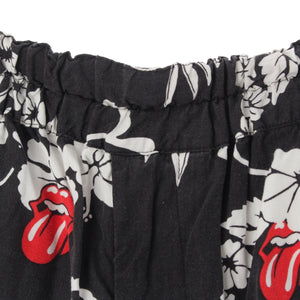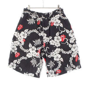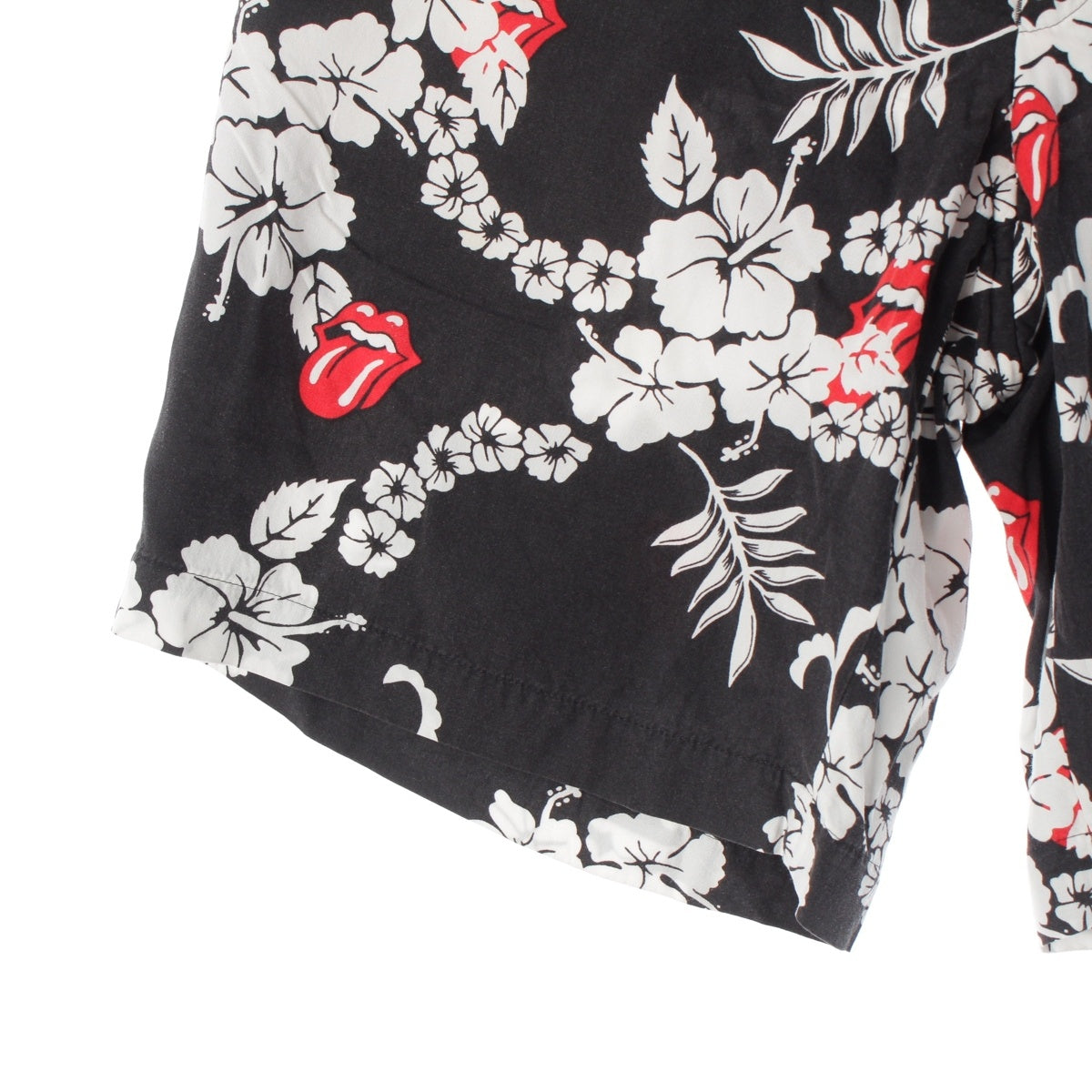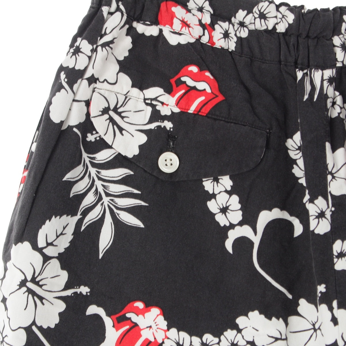 COMME des GARCONS HOMME PLUS Polynosic Rolling Stones Lip & Tongue Hibiscus Shorts PQ-P073 Black White S