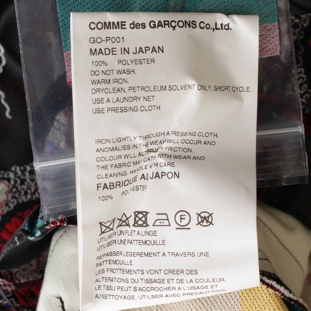 COMME des GARCONS Coat of arms embroidery balloon Pants Bottoms GO-P001 Black multicolor XS