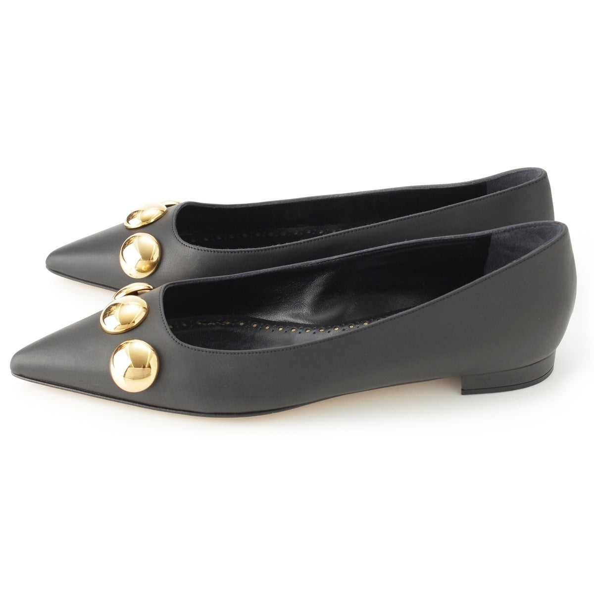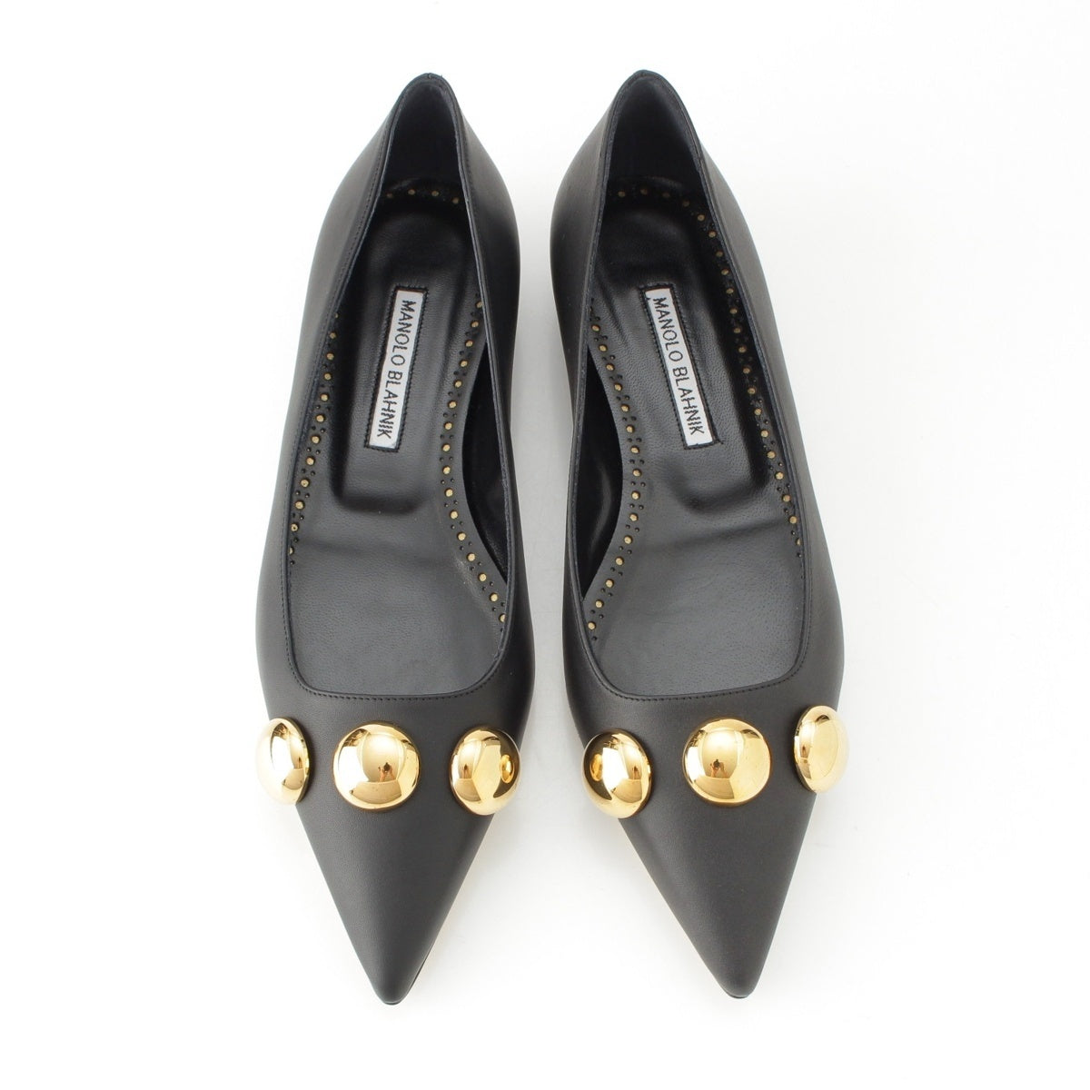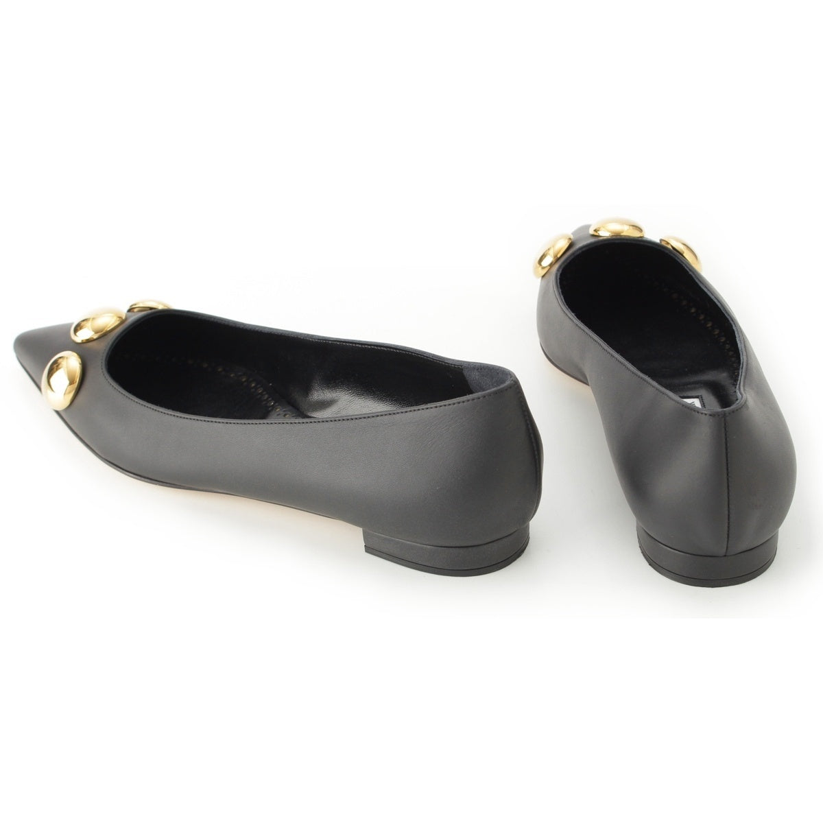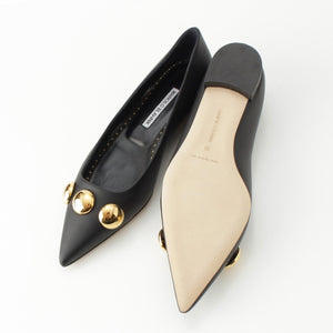 MANOLO BLAHNIK leather CHAPPAFLAT calf leather metal ball design flats pumps black 23