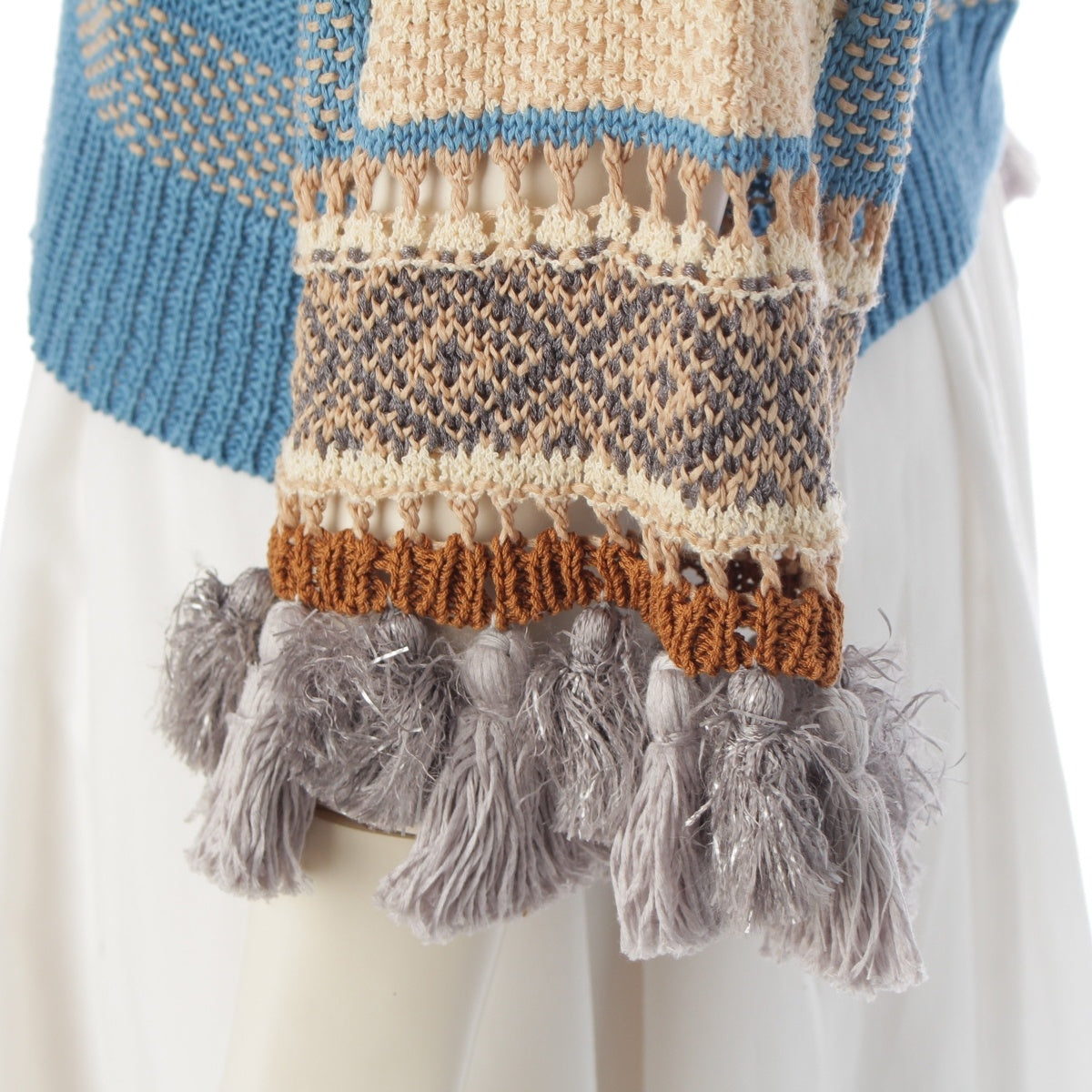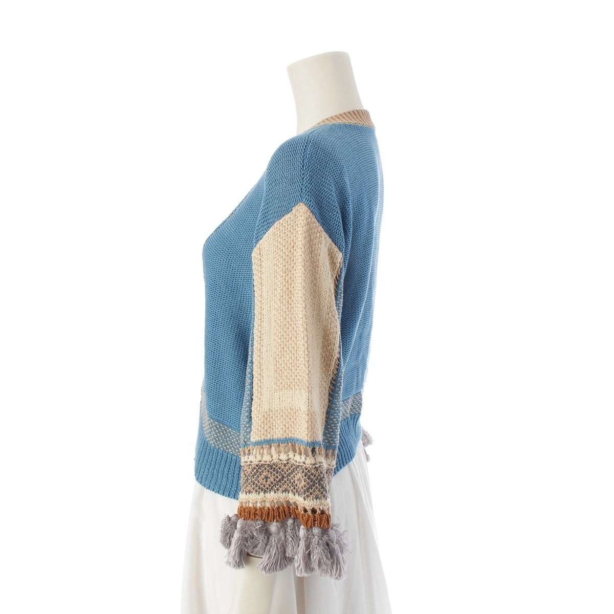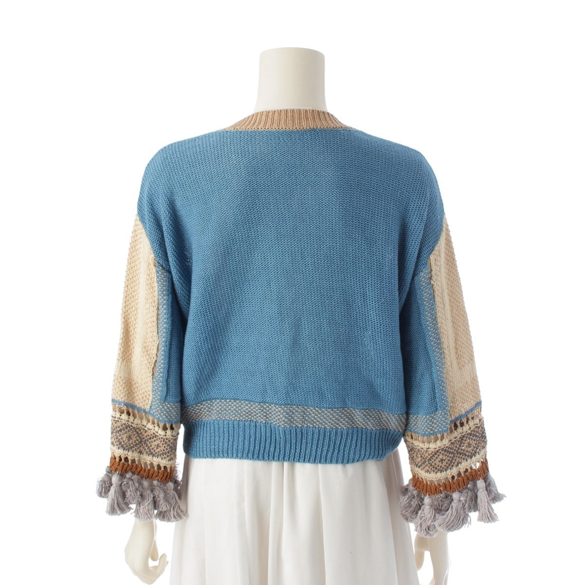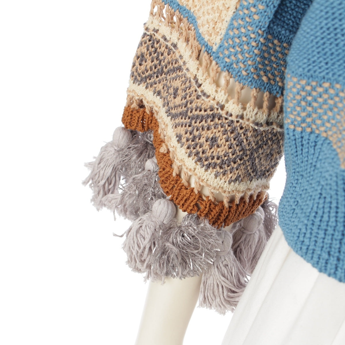 Mame Kurogouchi cotton Ethnic Pattern Fringe Knit cardigan tops MM18SS-KN054 multicolor 1