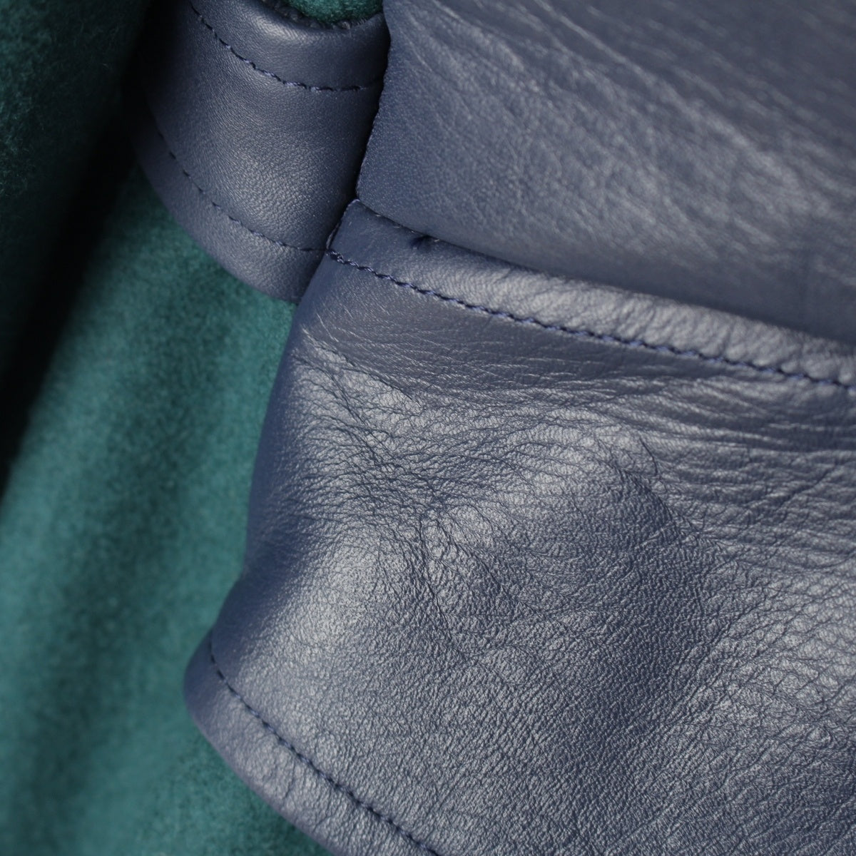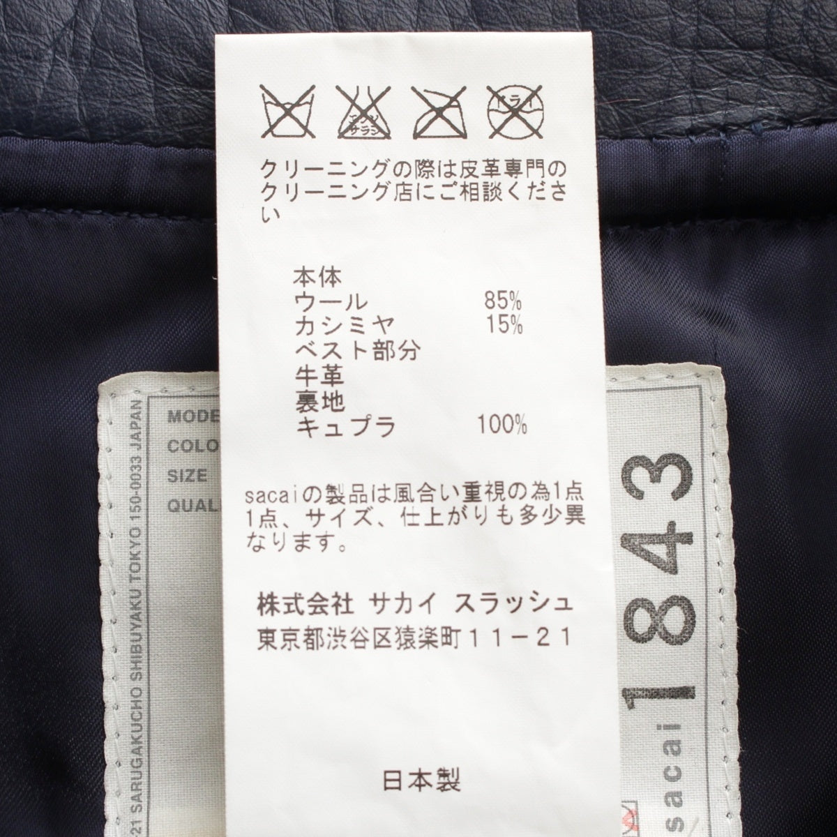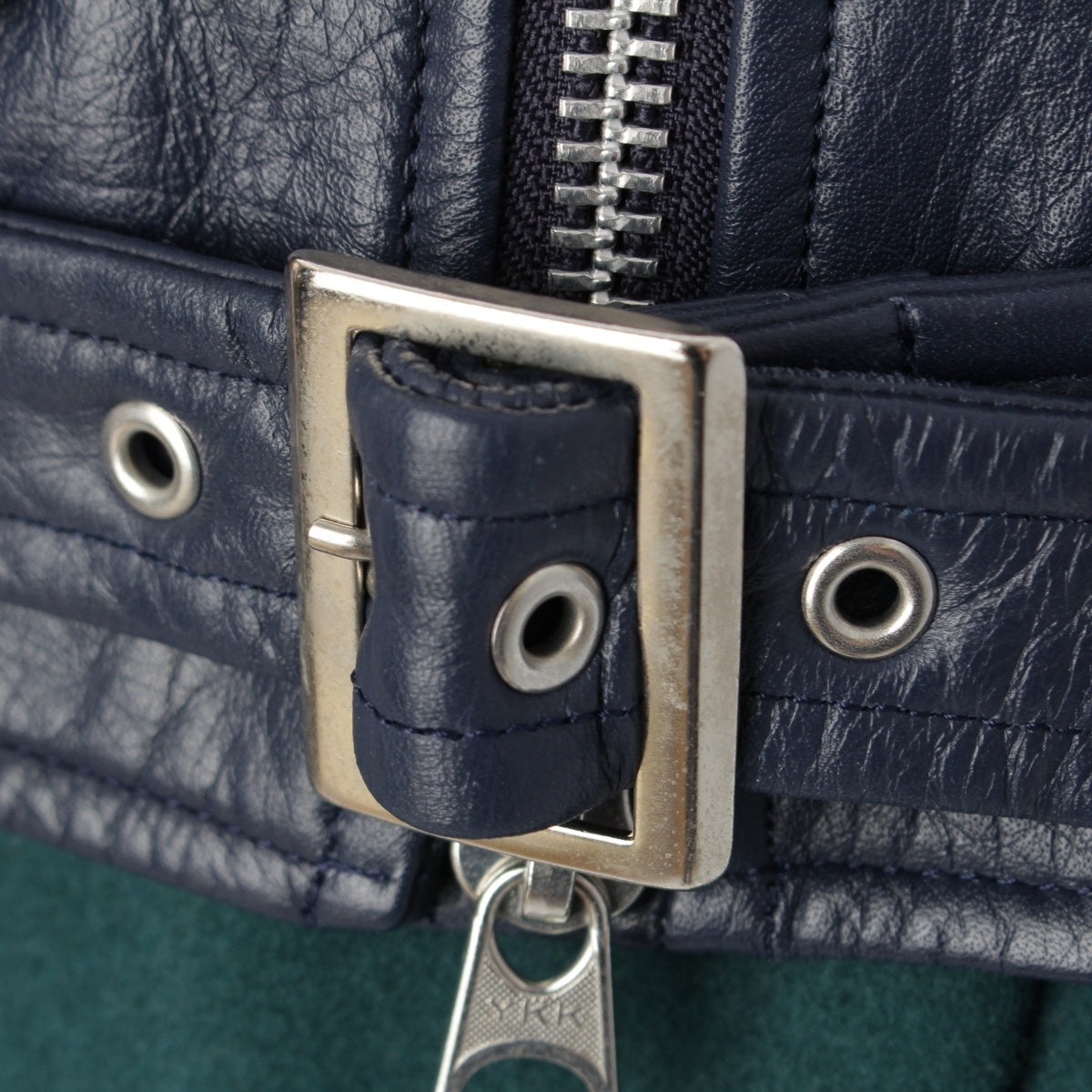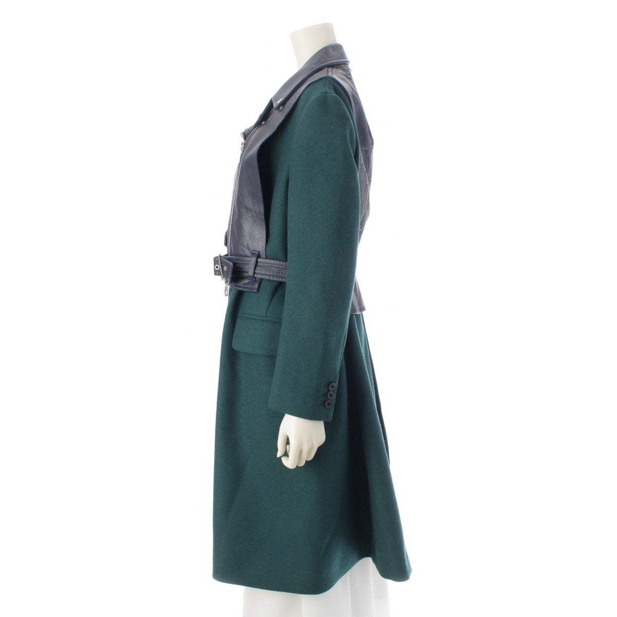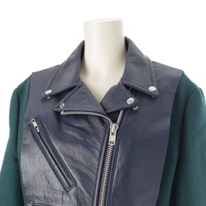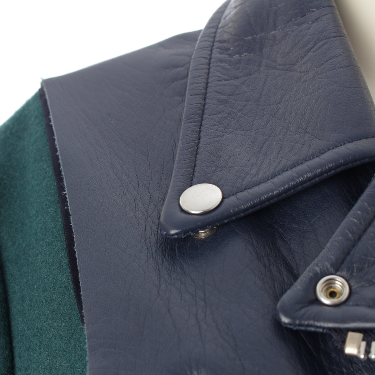 Sacai Leather Wool Cashmere Cowhide Biker Detail Coat Rider's Docking coat outer 13-01843 Blue x green 2