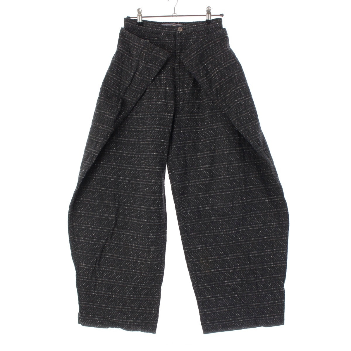 ISSEY MIYAKE linen Brush tag 2WAY deformed wide Pants Bottoms Black White 9