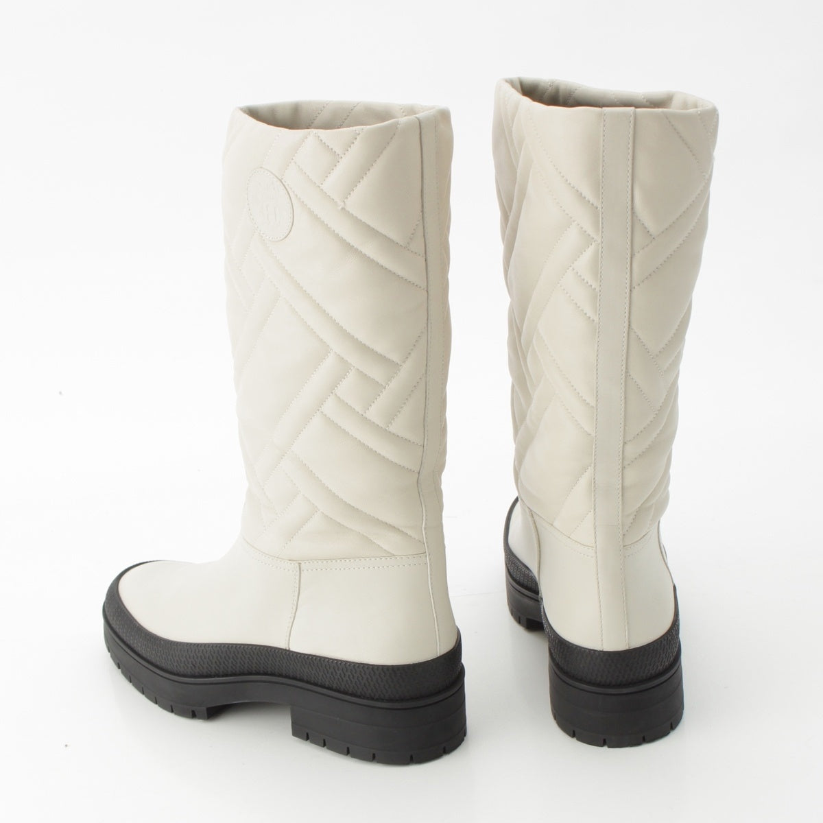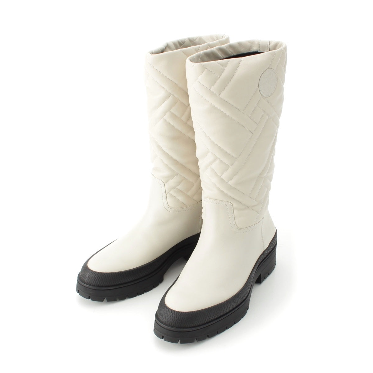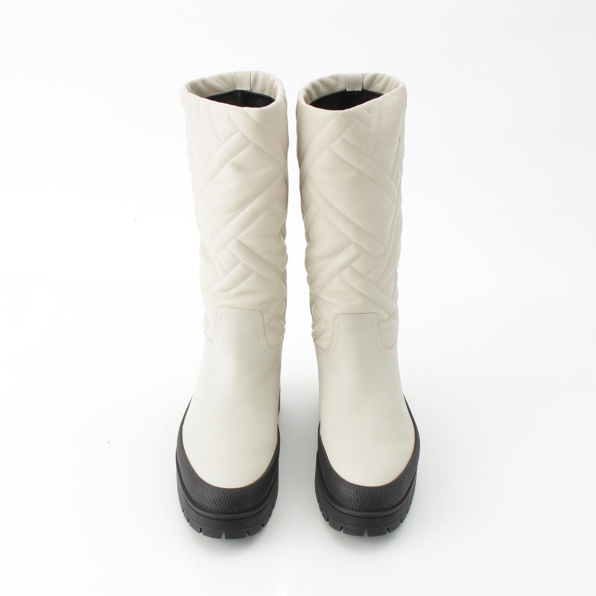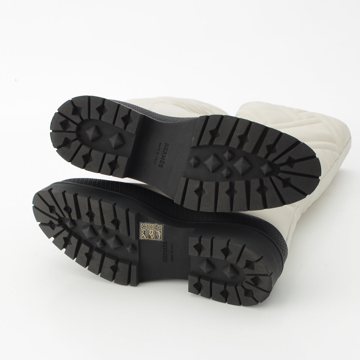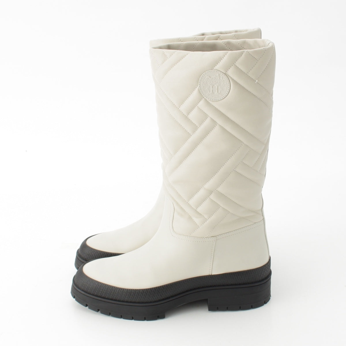 HERMES Fuji Leather quilting Bookplate boots Long Shoes white 37 1/2