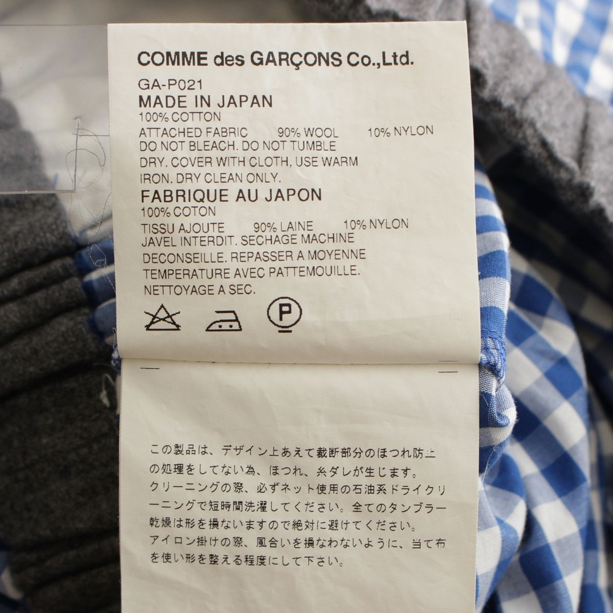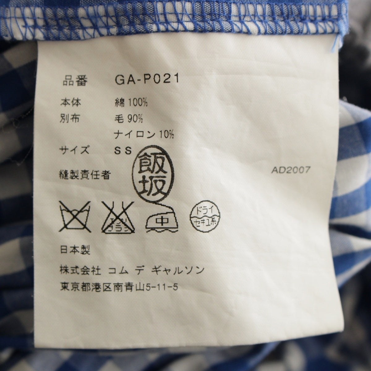 COMME des GARCONS wool cotton Waist switching gingham check Saruel pants Bottoms GA-P021 blue Stainless Steel