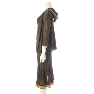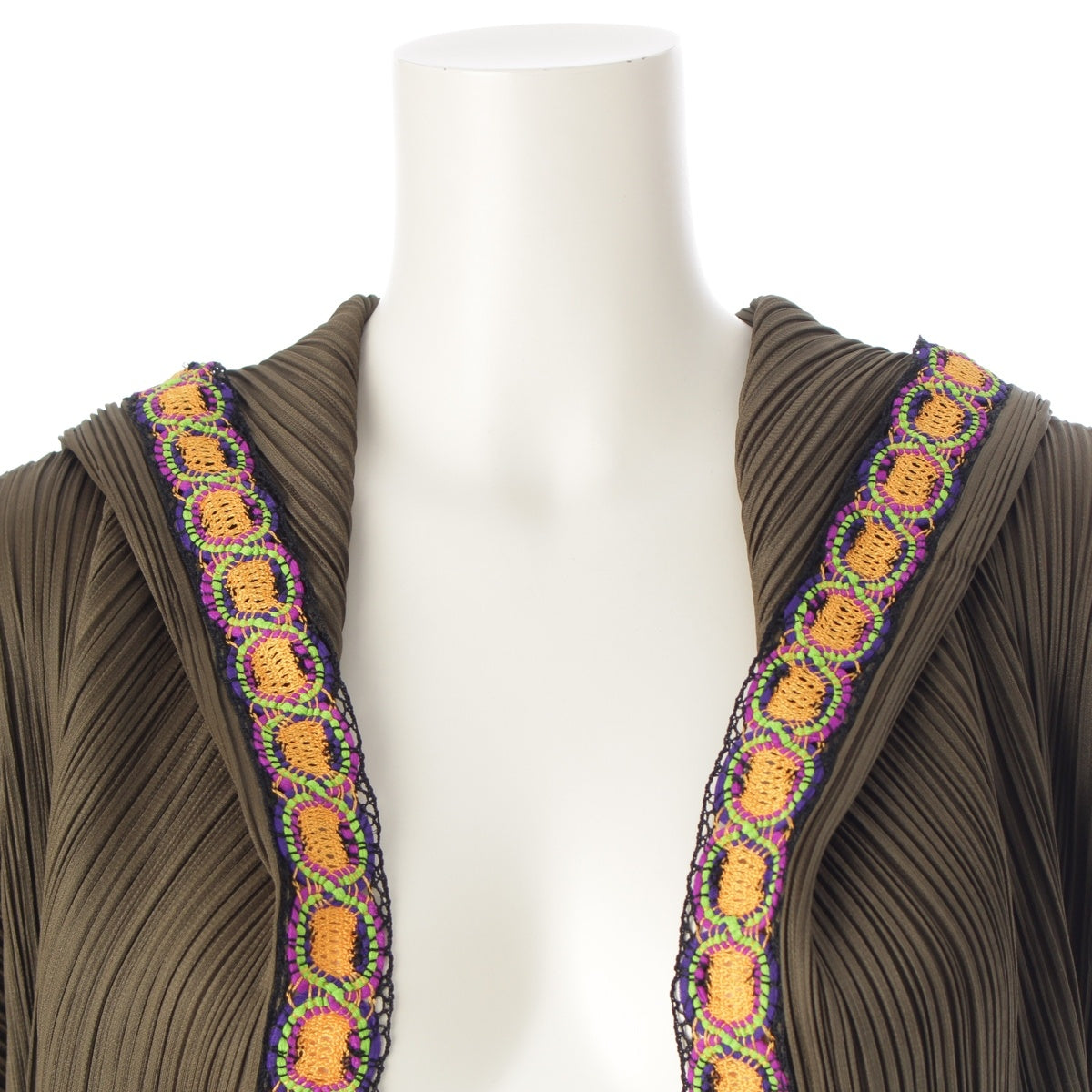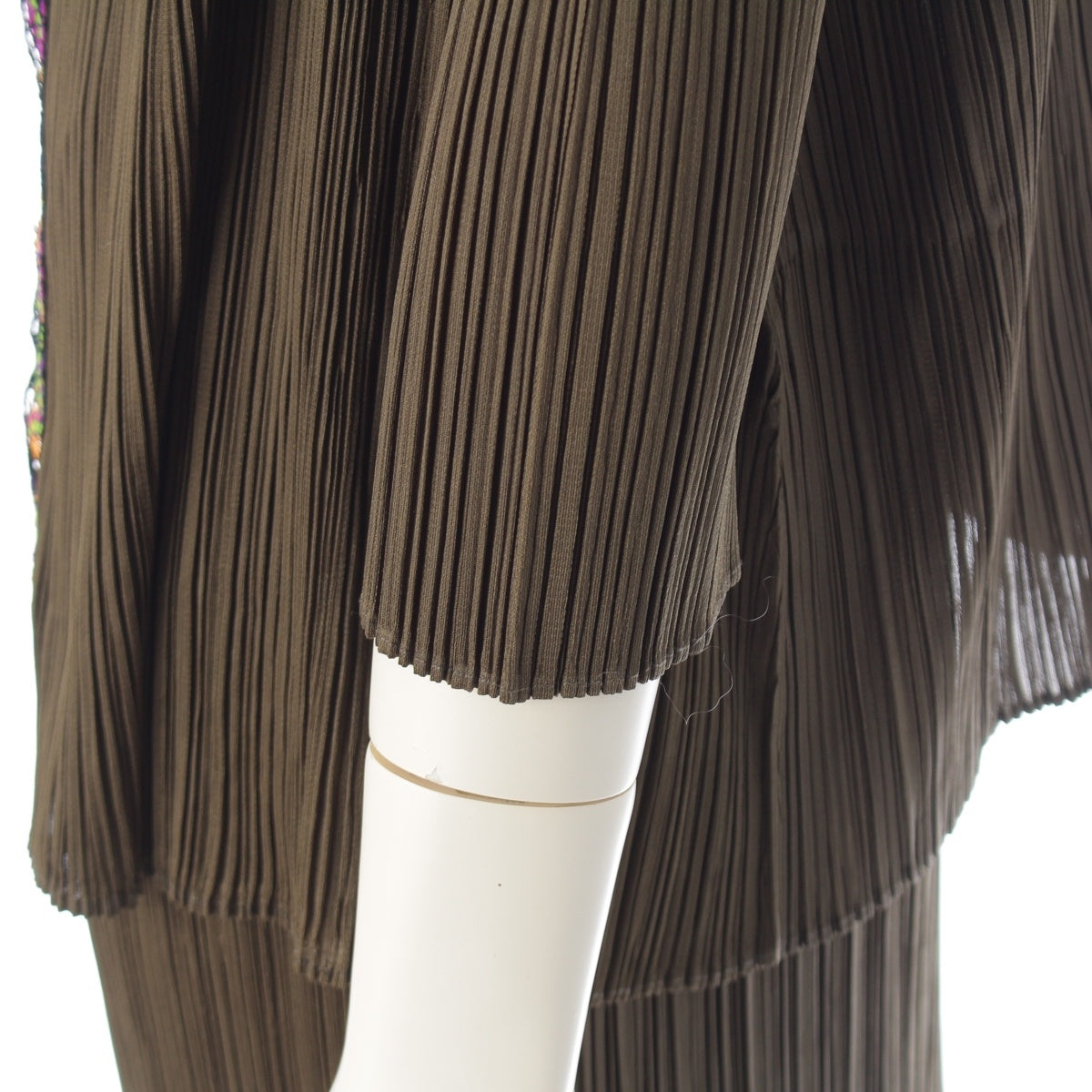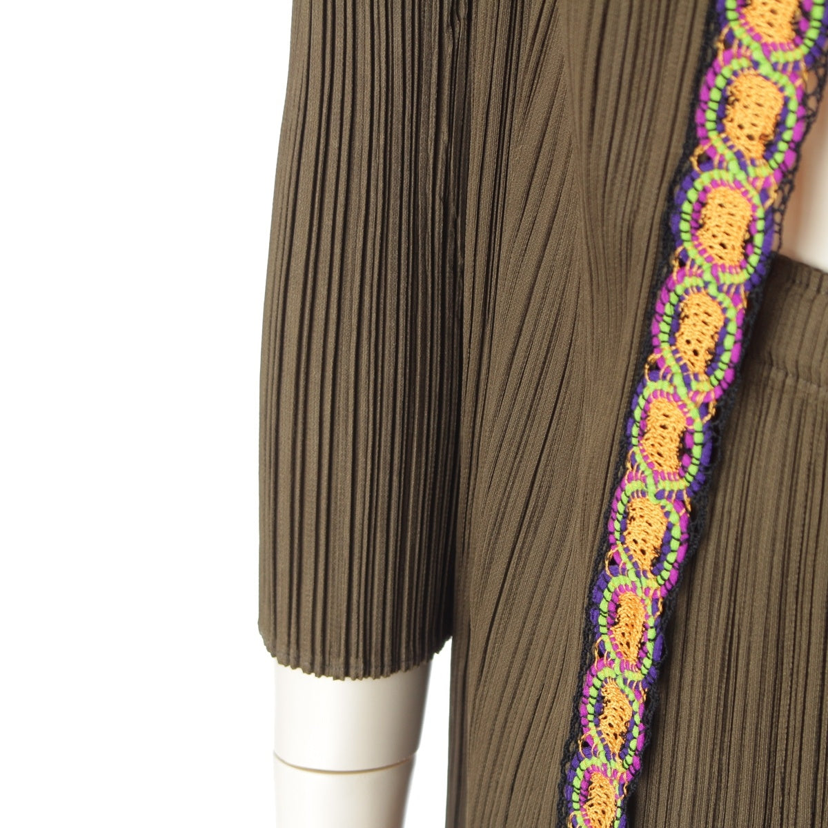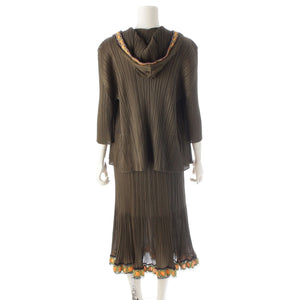 PLEATS PLEASE ISSEY Trim embroidered ethnic style hoodie Skirt setup PP73-JC573/JG575 Khaki Olive Multicolor 4/1