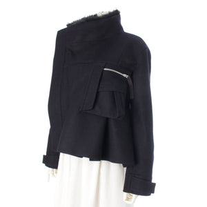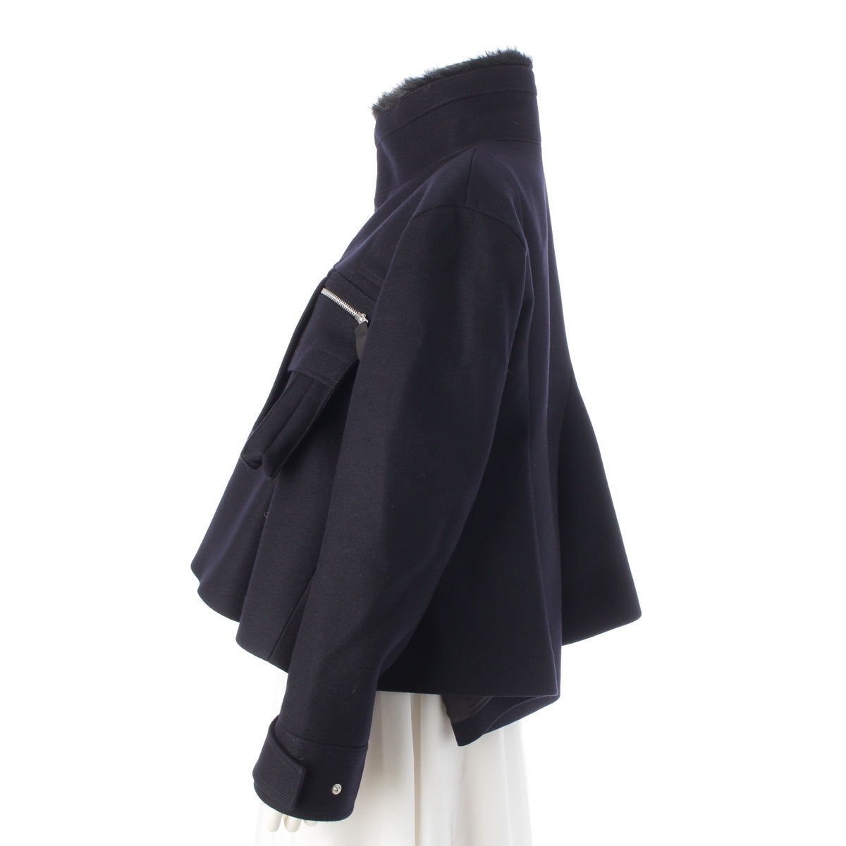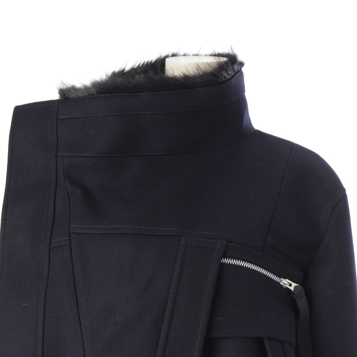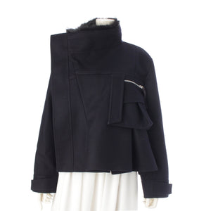 Sacai wool Melton Asymmetrical Blouson Jacket outerwear 25-08068 Navy black 2