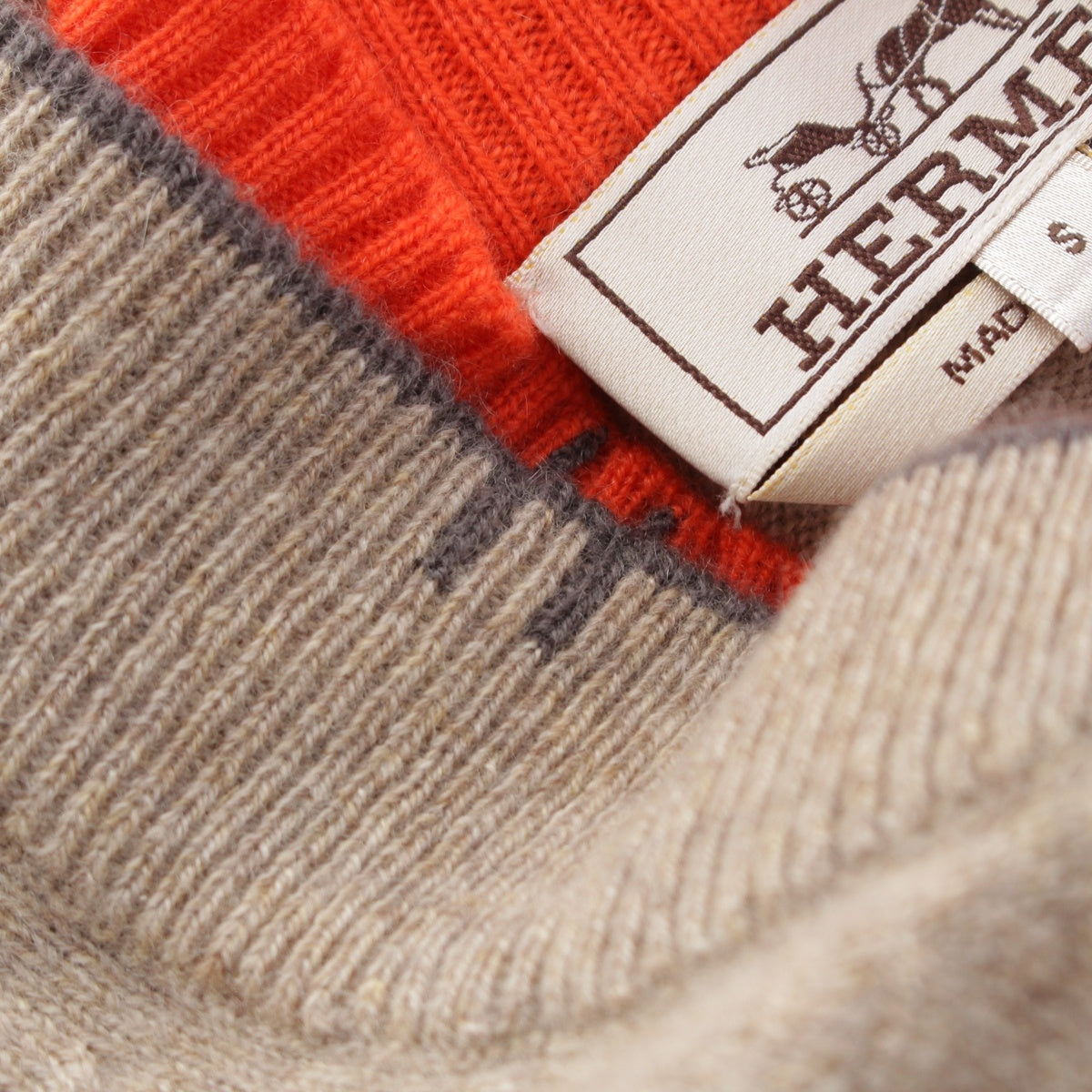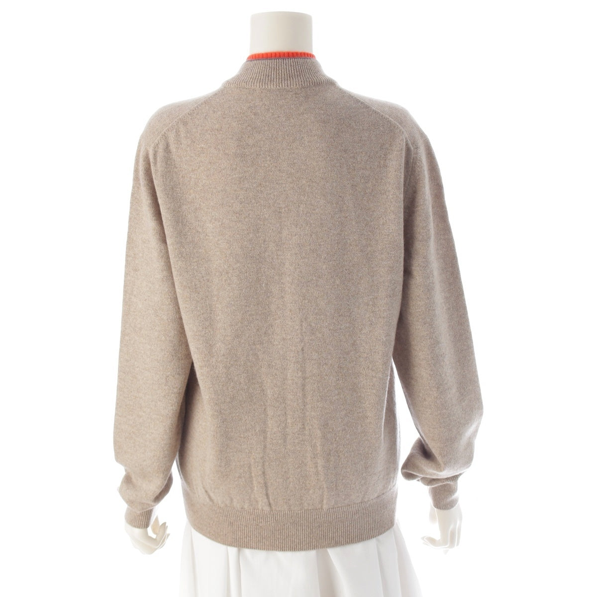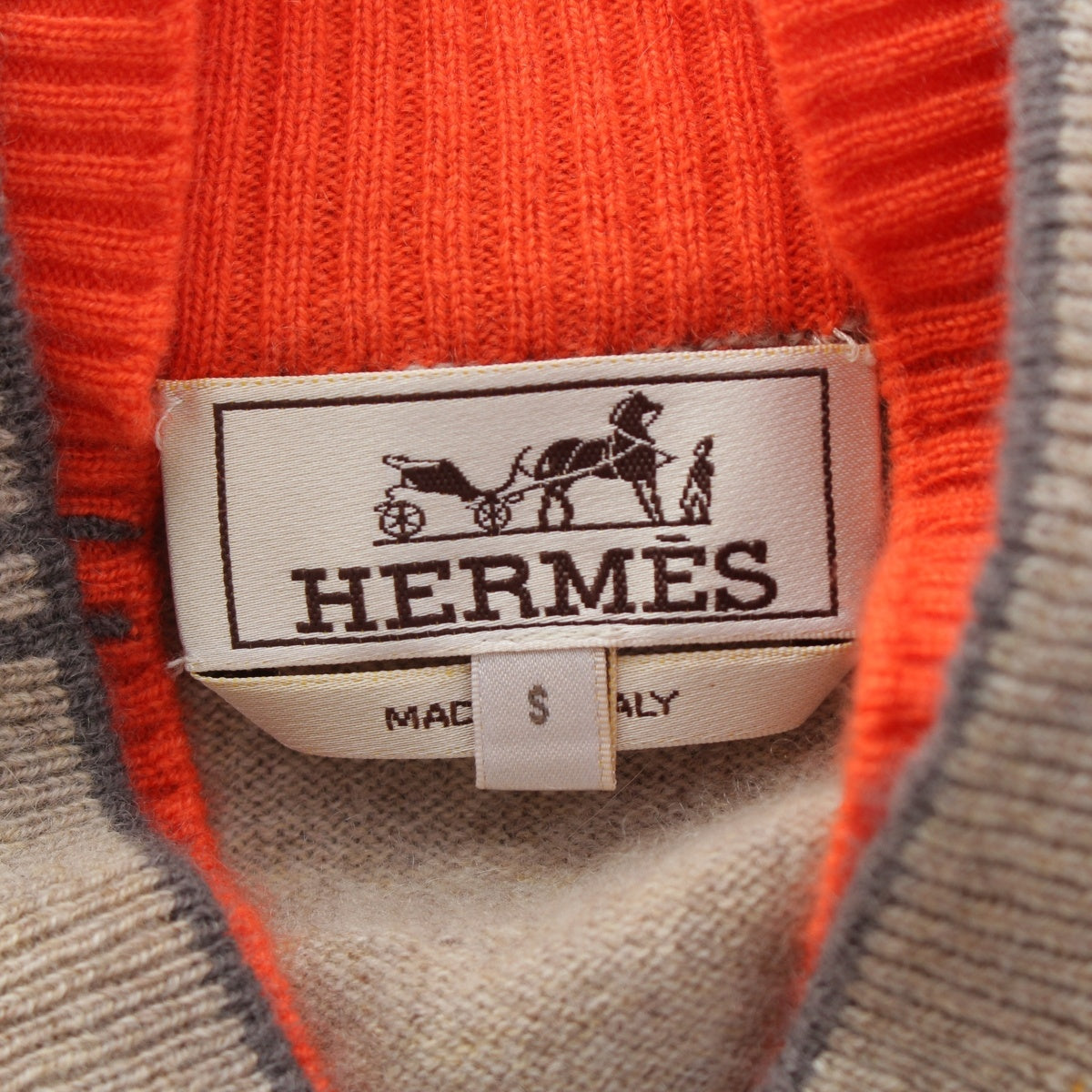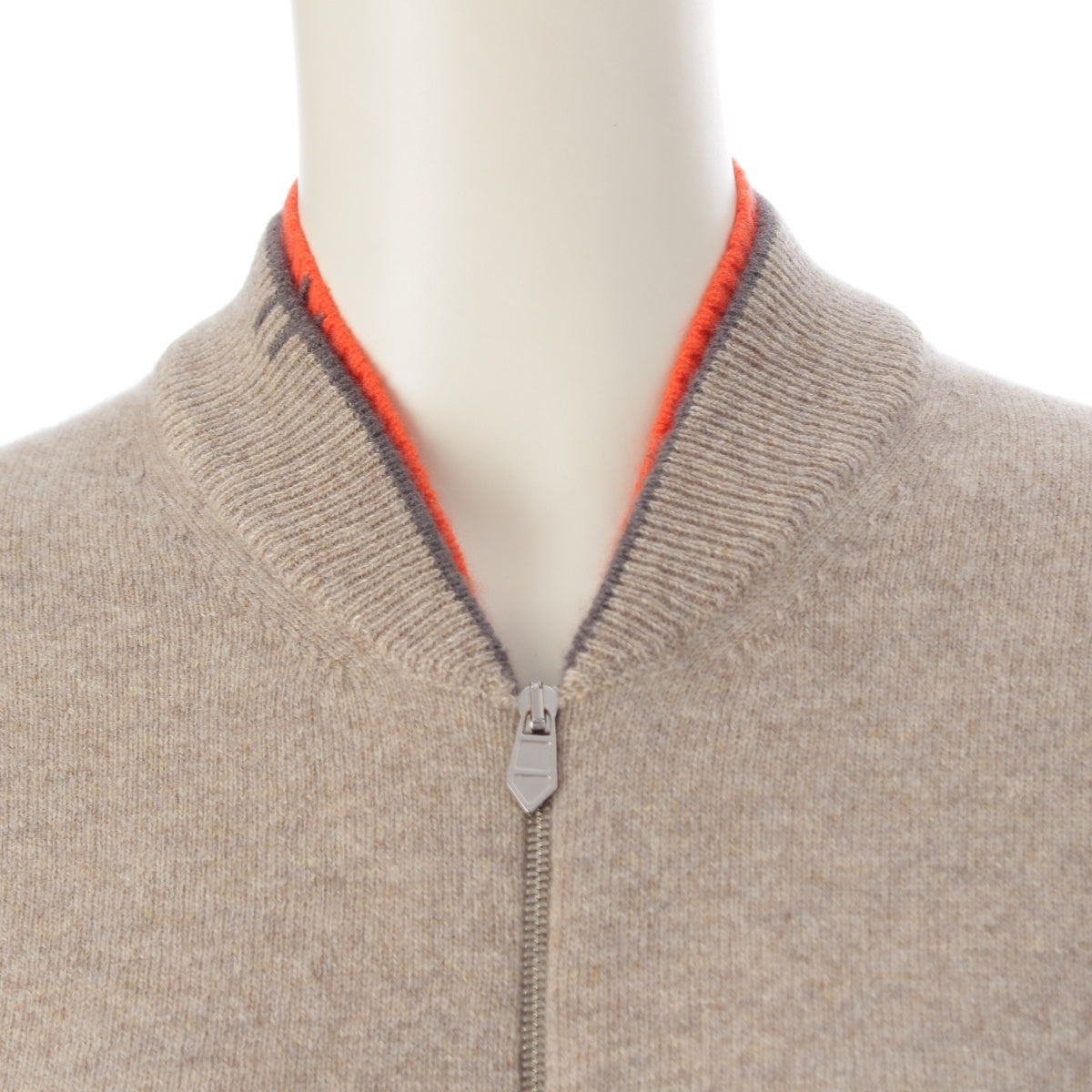 HERMES cashmere H Initial Zip Up cardigan Beige x orange S