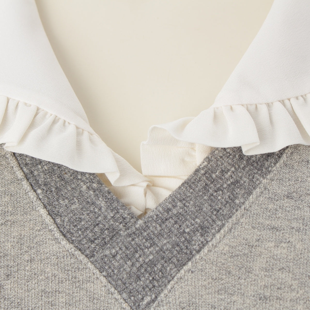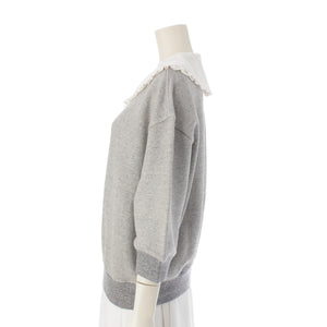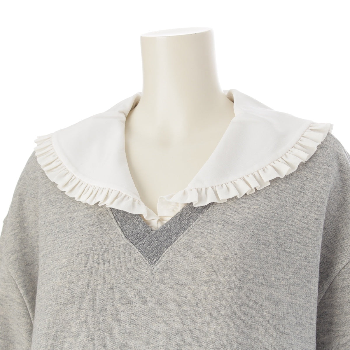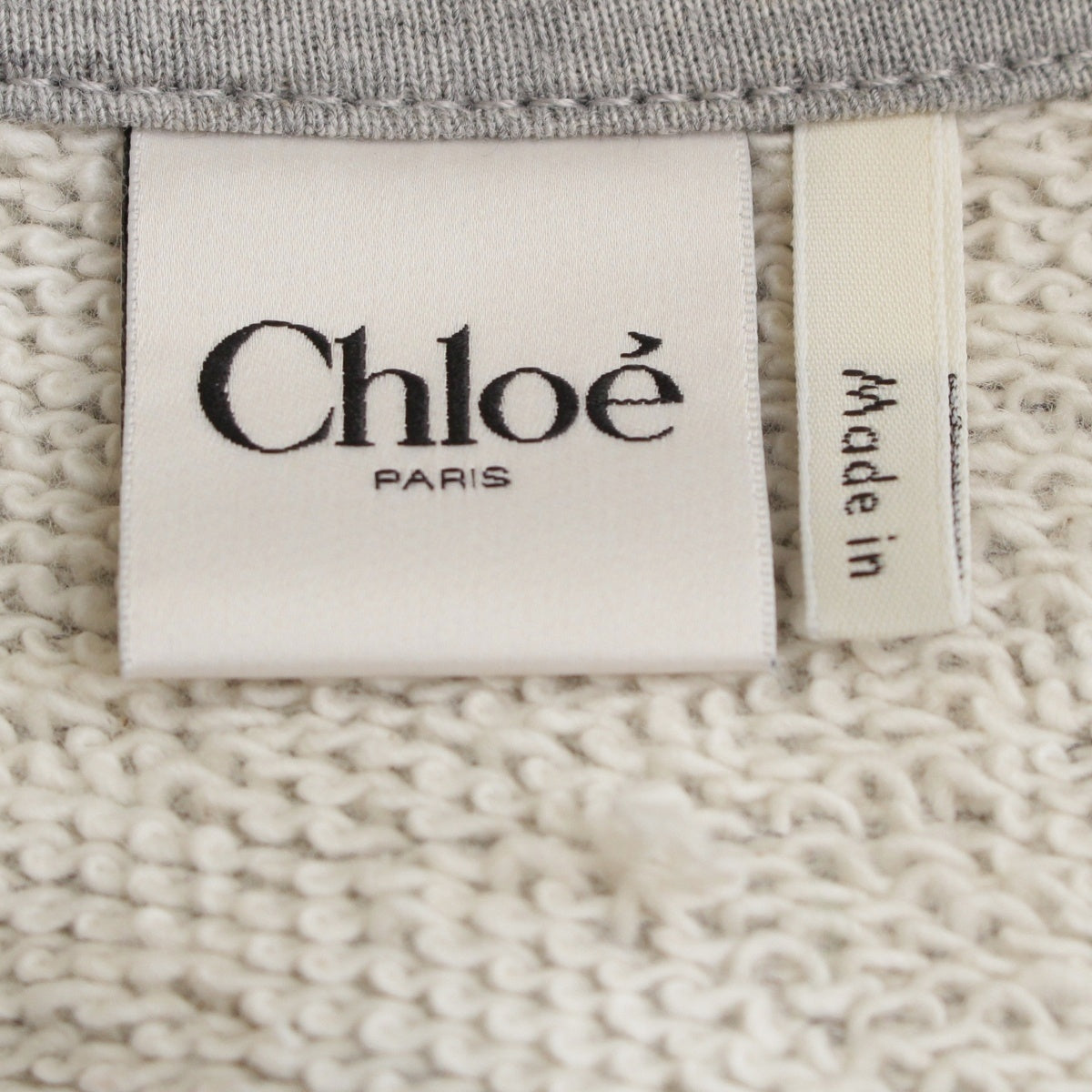 Chloe cotton Embroidered logo, ruffle collar, crew neck sweat tops CH25WJ17194060M Gray white M