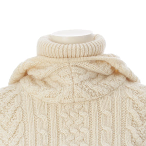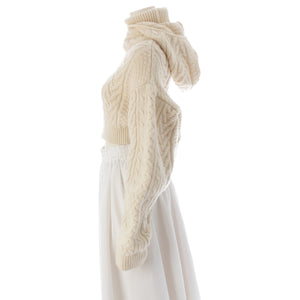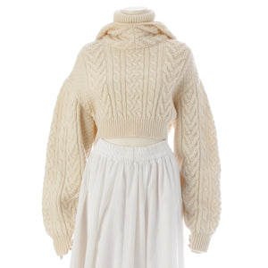 COMME des GARCONS Noir Keini Nomiya wool Turtleneck hooded cable knit sweater 3J-N001 Ivory S