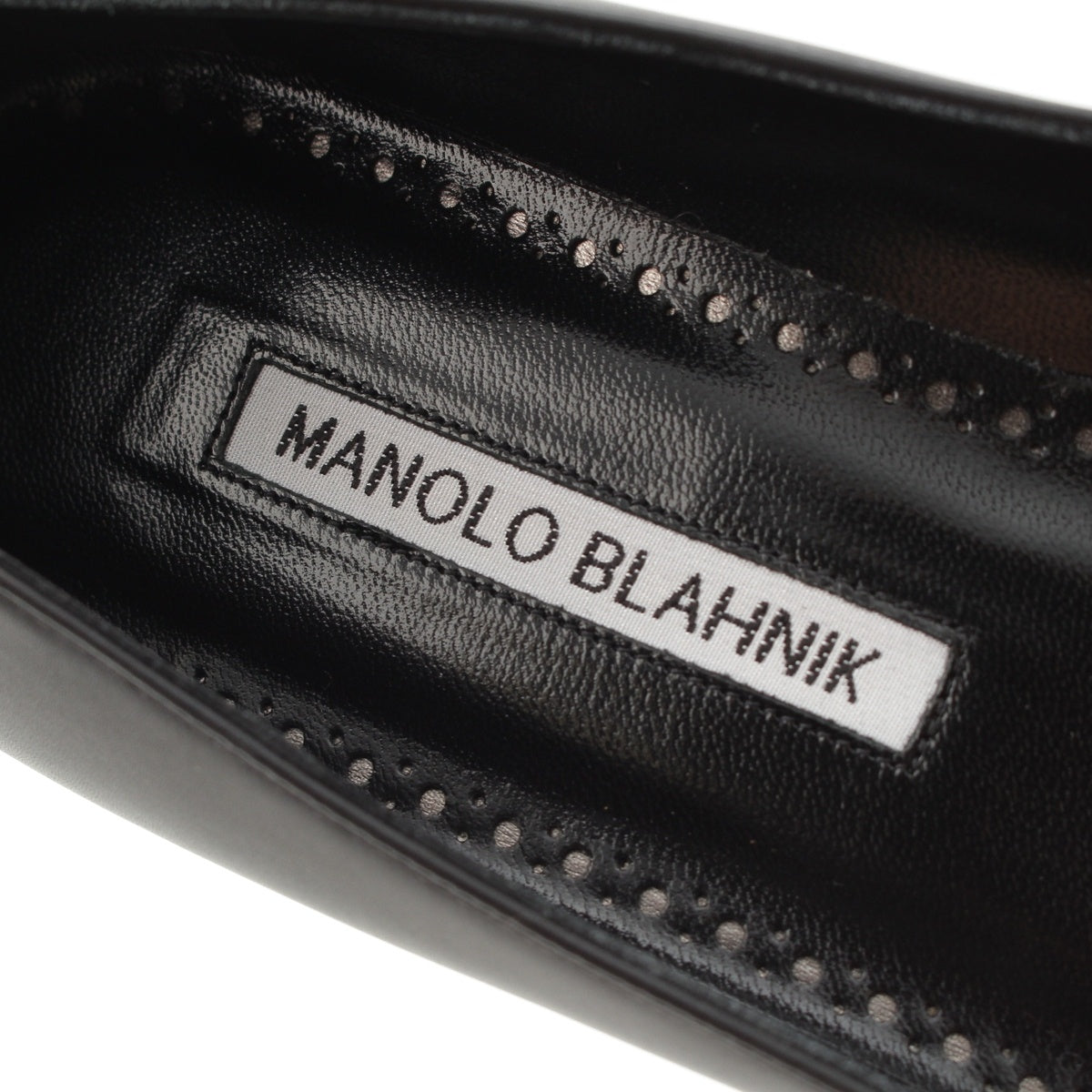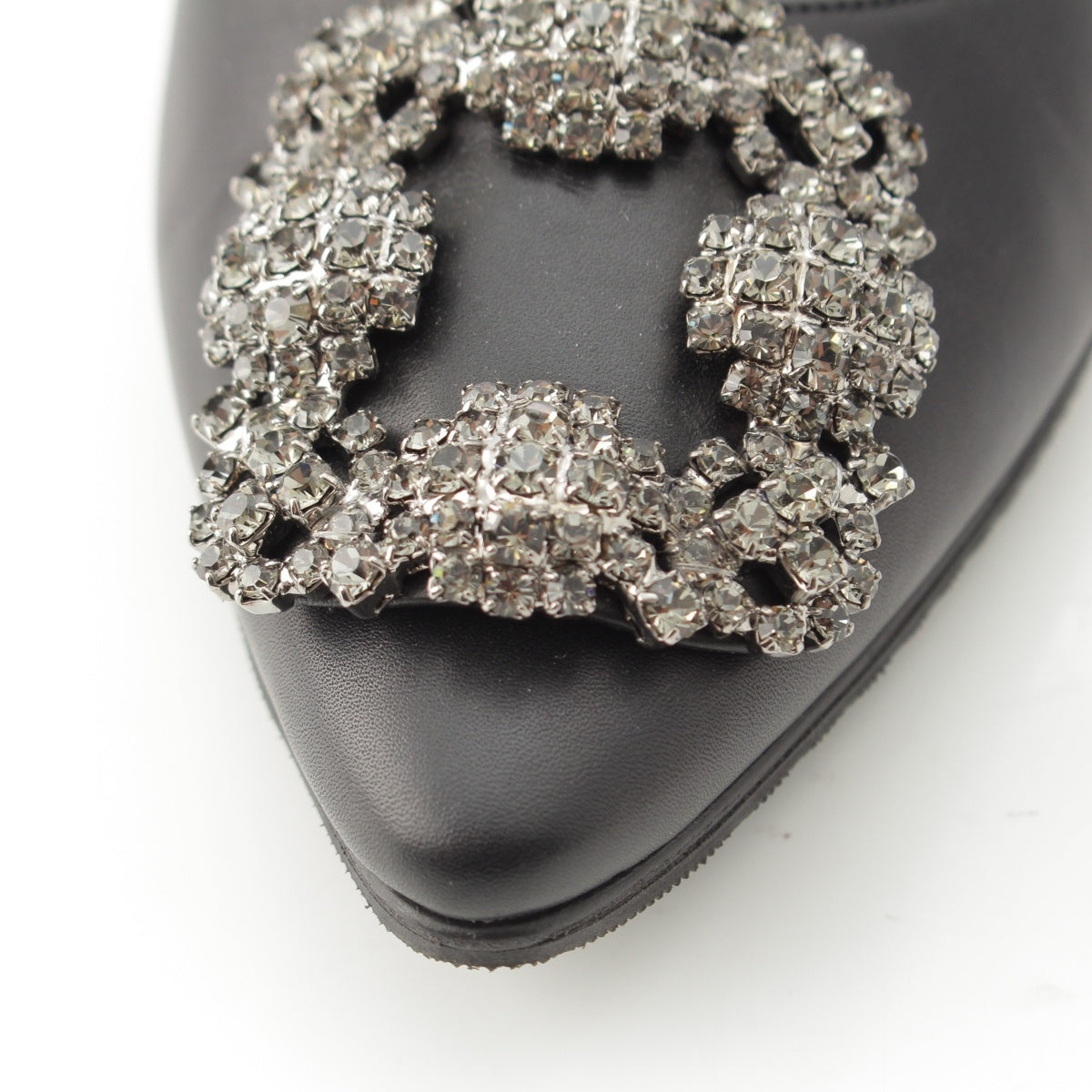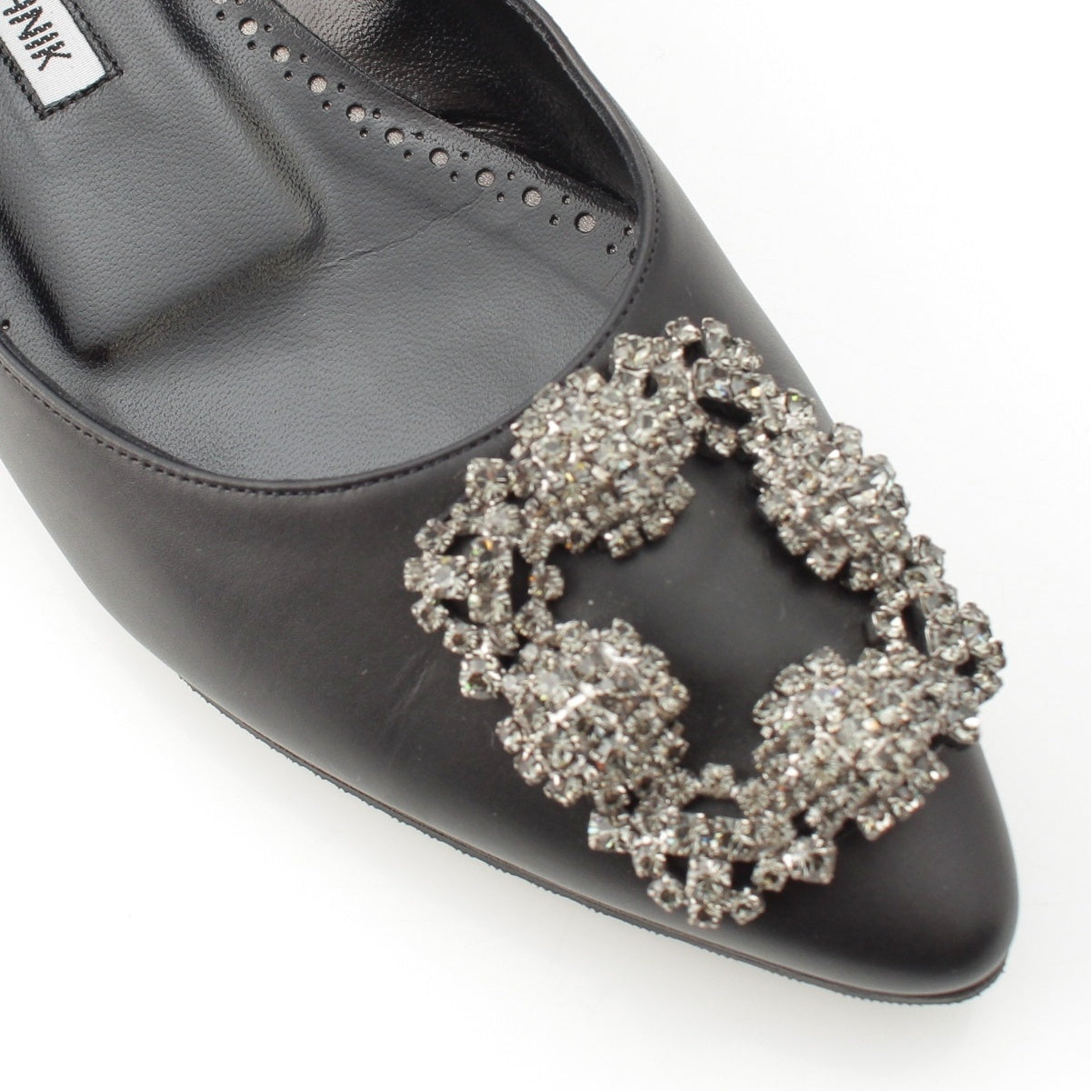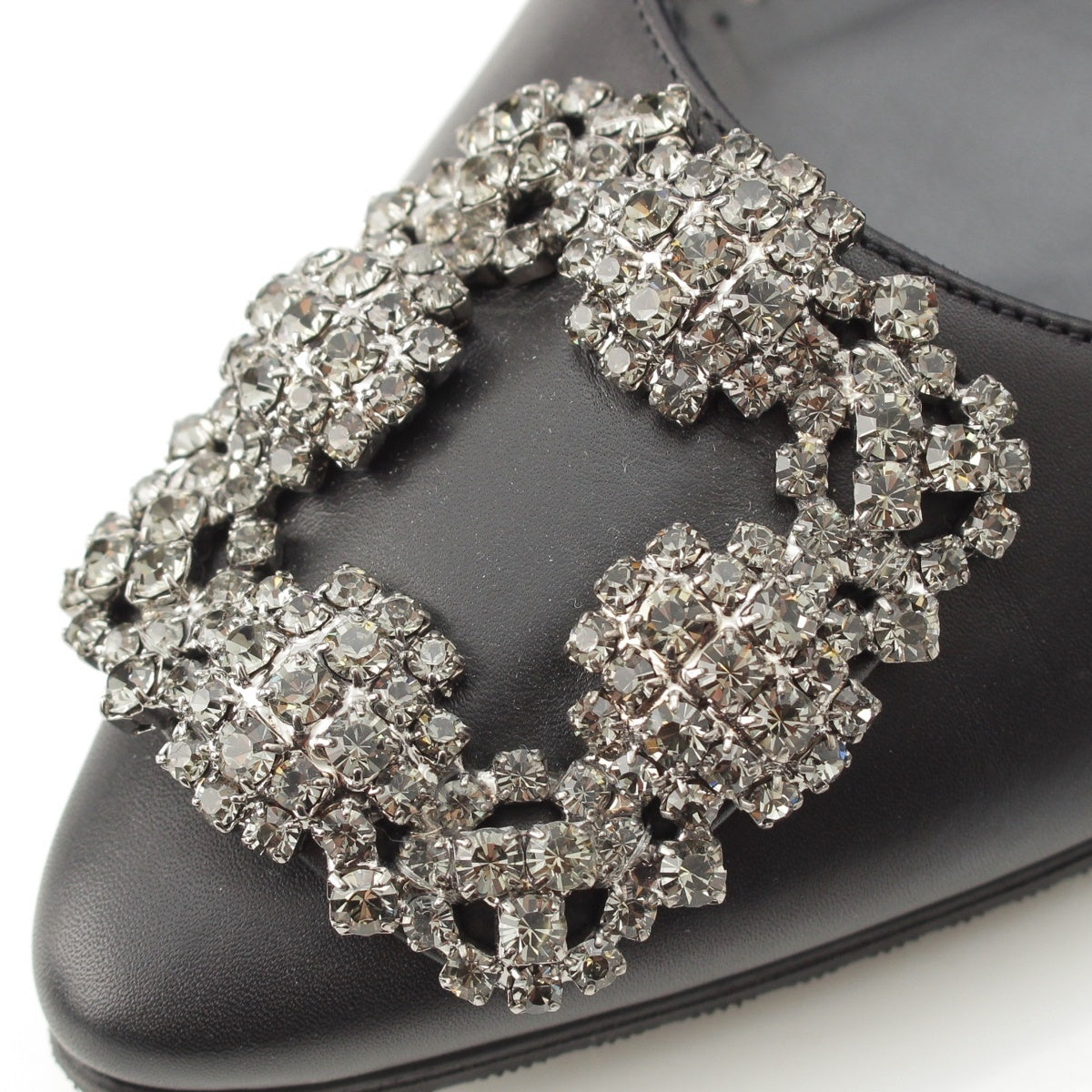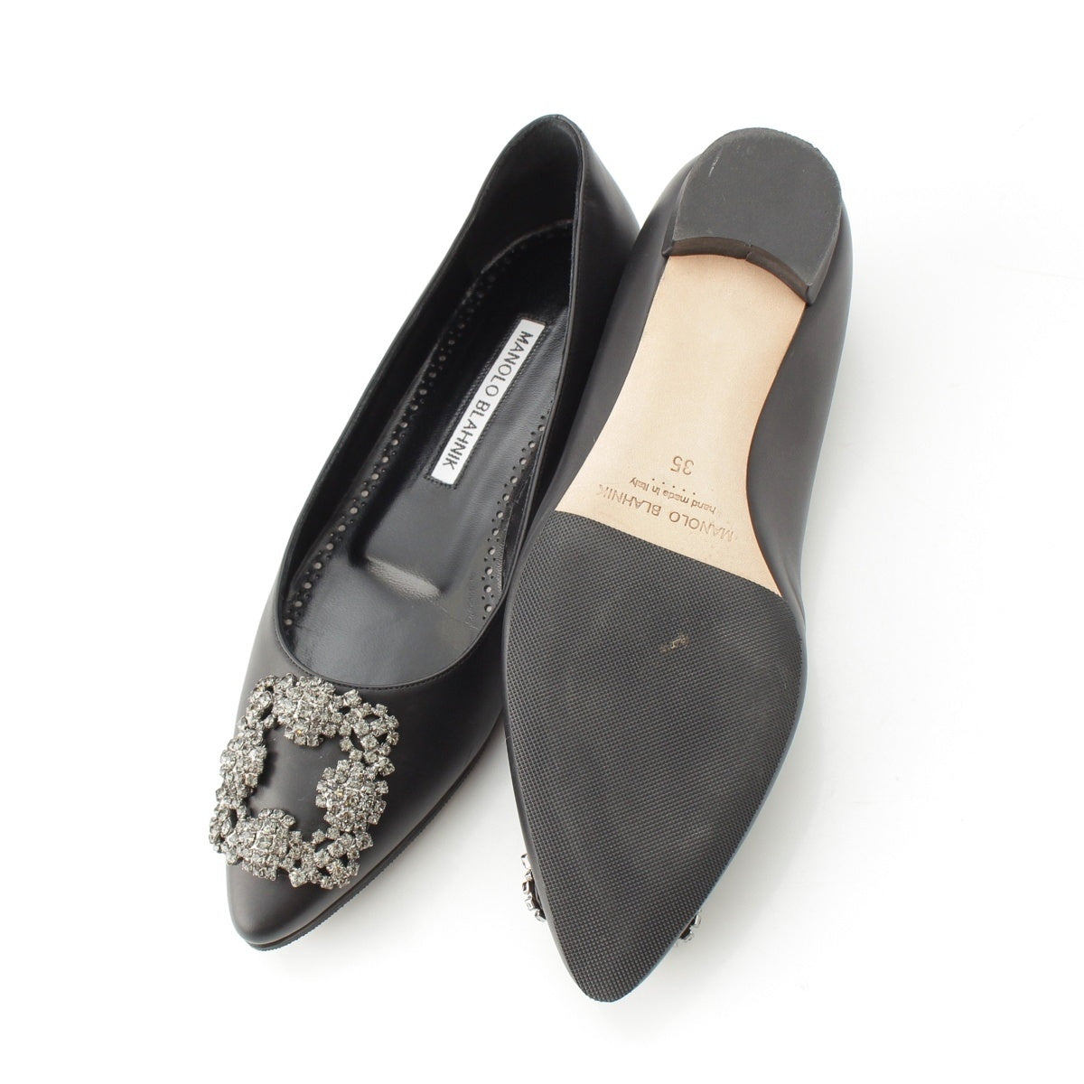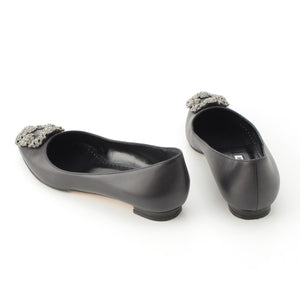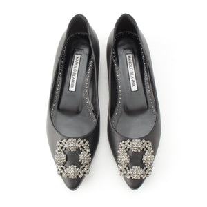MANOLO BLAHNIK HANGISI leather Jewel Buckle Flat pumps shoes black 35