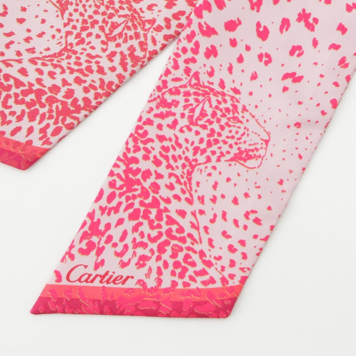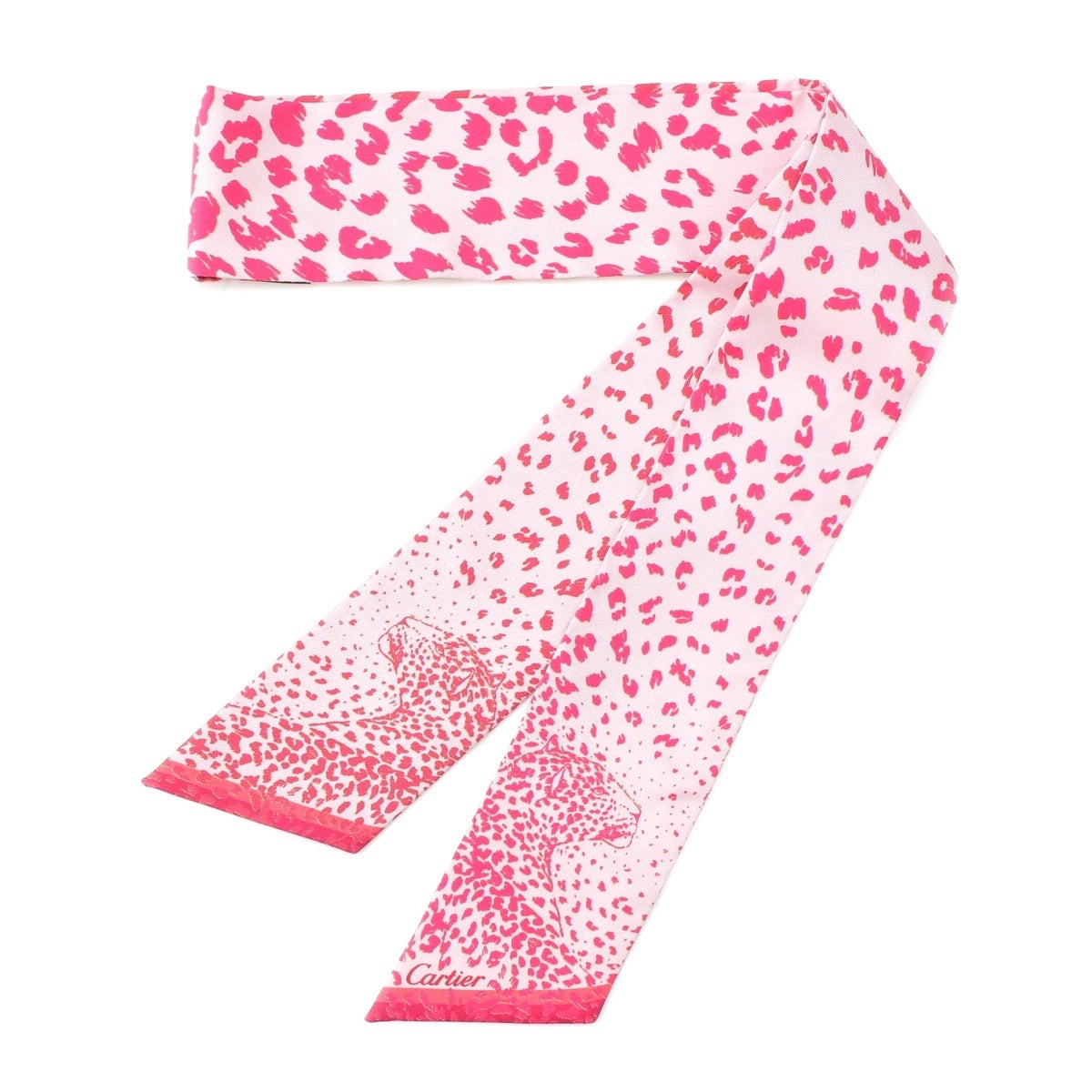 CARTIER Twilly silk PANTHERE Leopard Pattern scarf pink