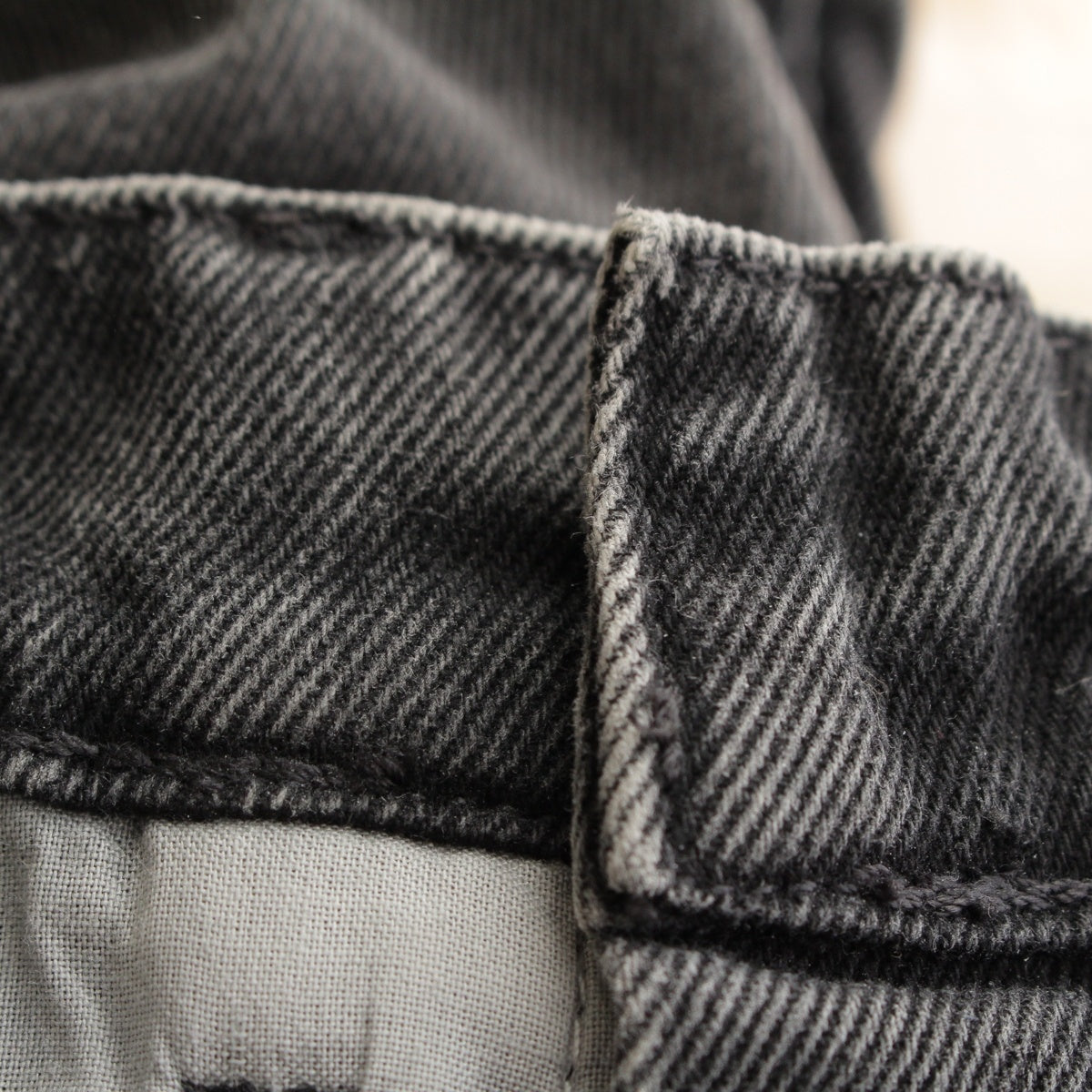 Waist number tag: Stained Waist lining: Rubbed and stained Hem: Rubbed and stained *Similar damage throughout Front right thigh: Stained Front left knee: Stained、Smells likeStorage odor