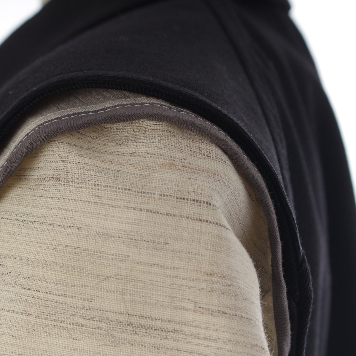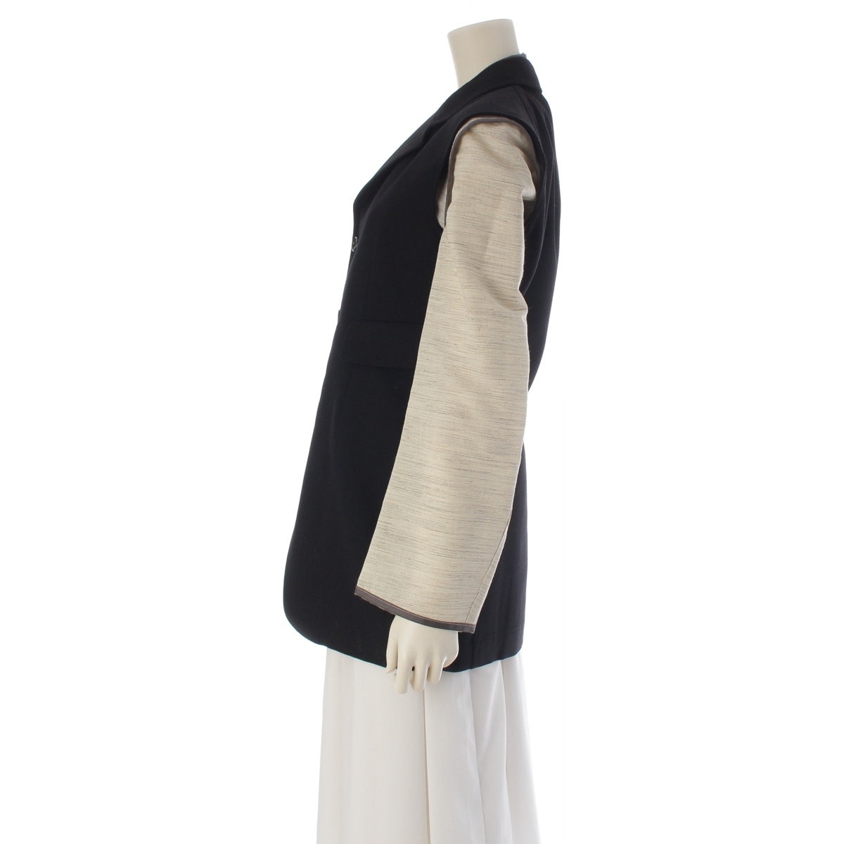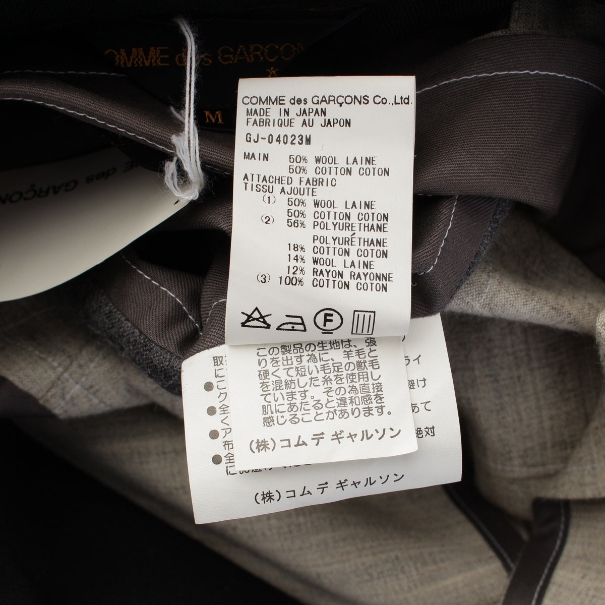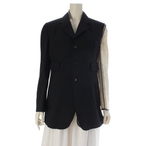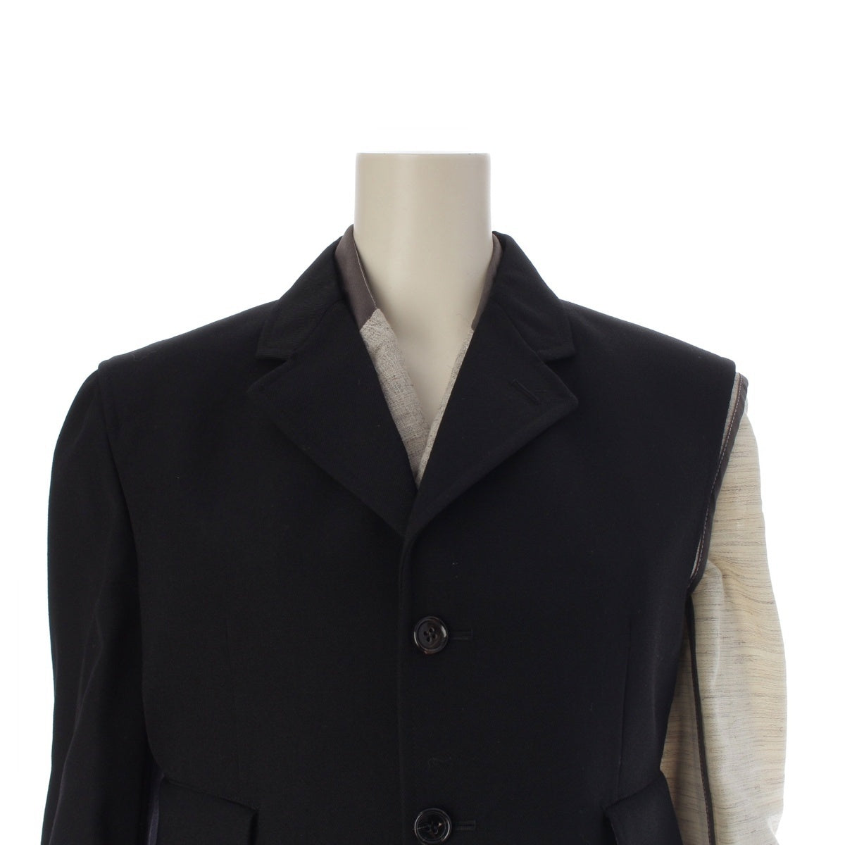 COMME des GARCONS Wool Cotton Rayon Switching, one-sleeve layered tailored jacket Tops hook GJ-04023M Black, Gray, Greige M