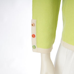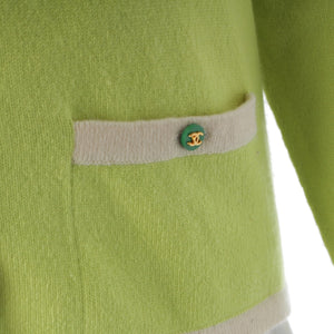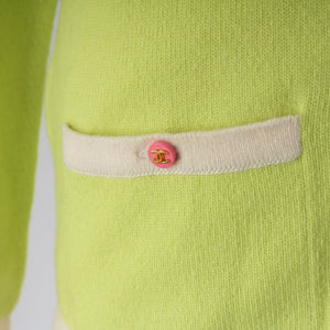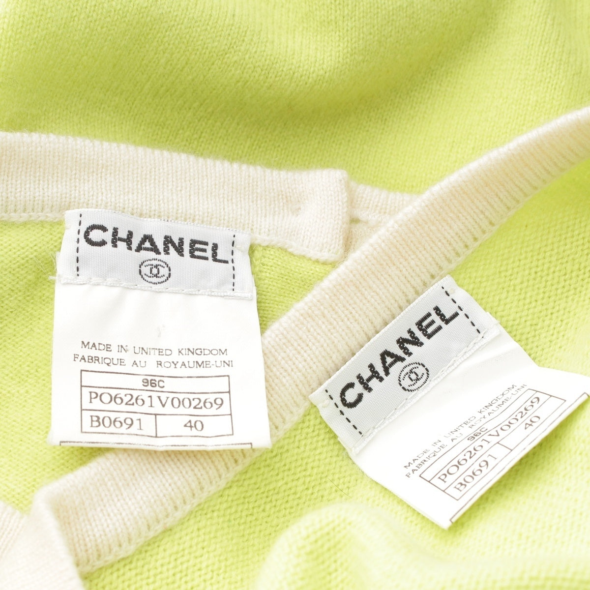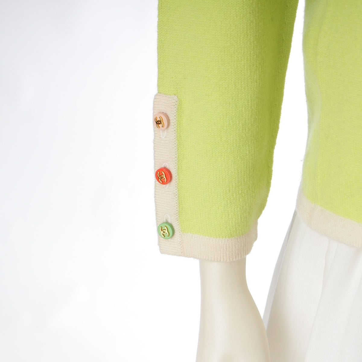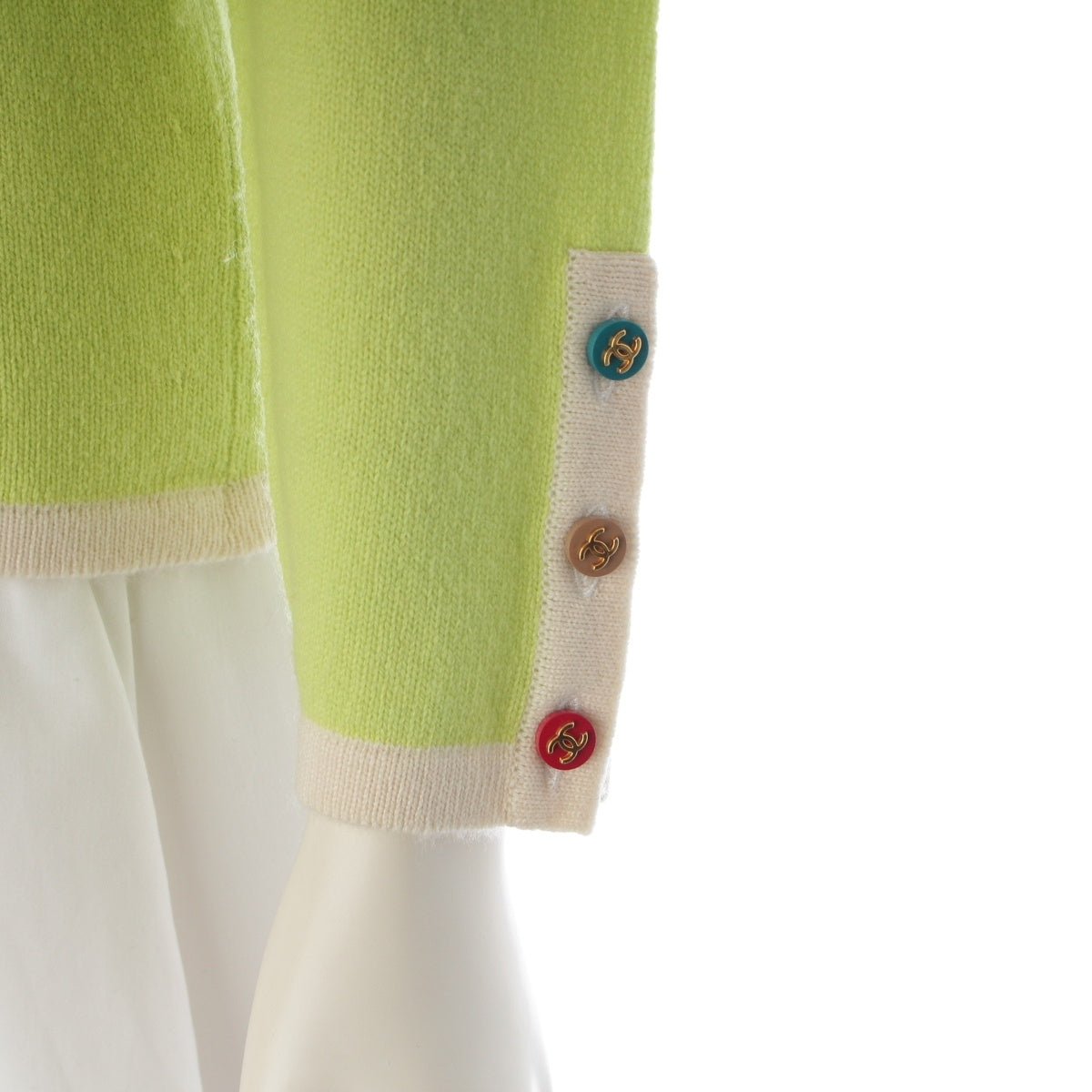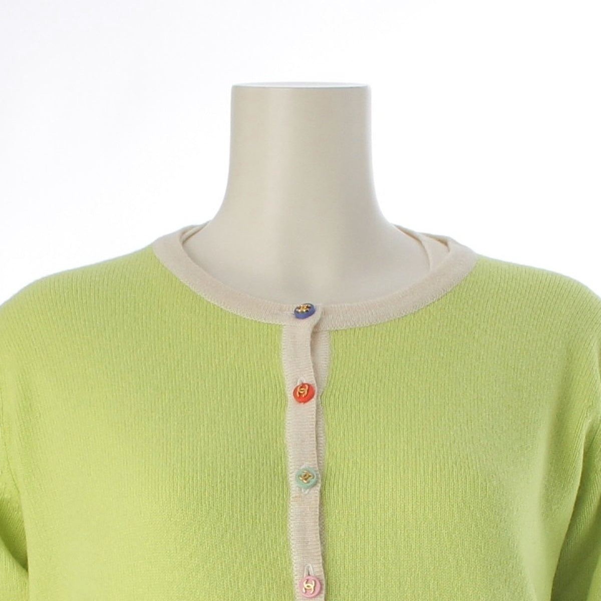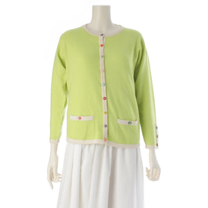 CHANEL cashmere COCO Mark Multicolor Button Short-Sleeve Top Long-Sleeve Cardigan ensemble P06261 yellow-green 40