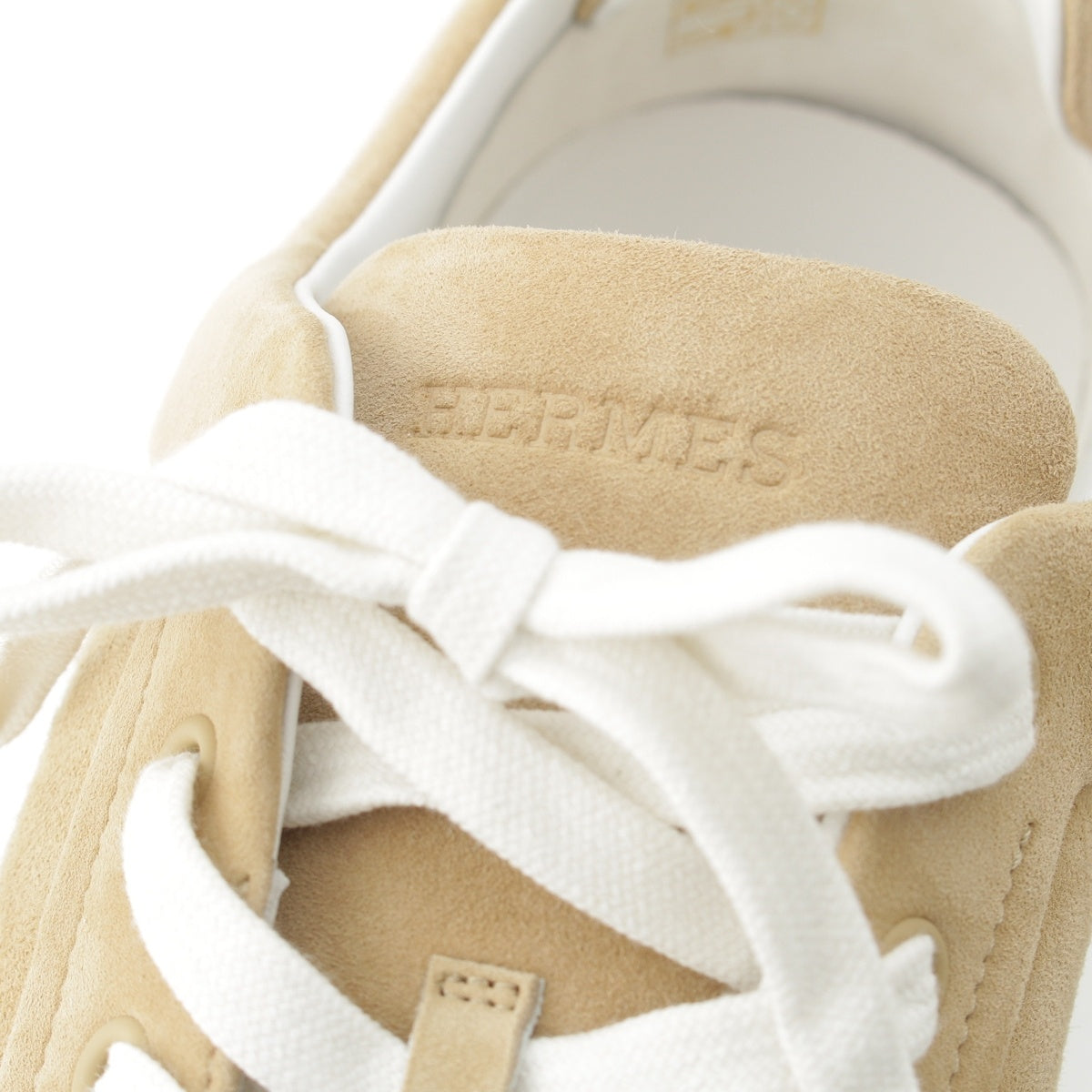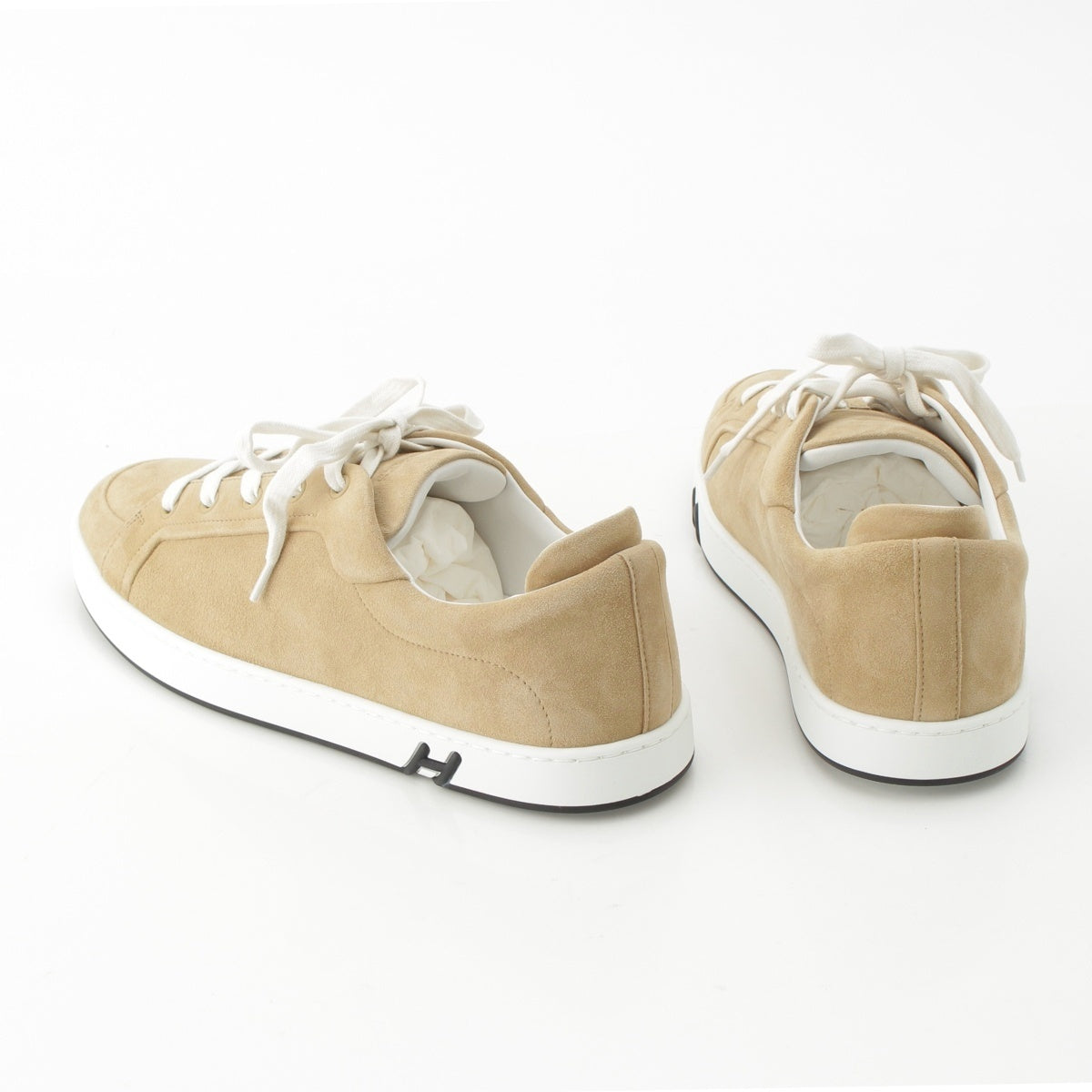 HERMES Kid chevre velois Low cut sneakers shoes Beige white 42.5