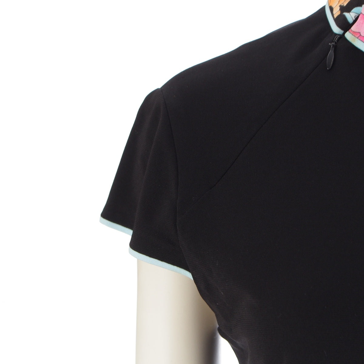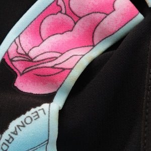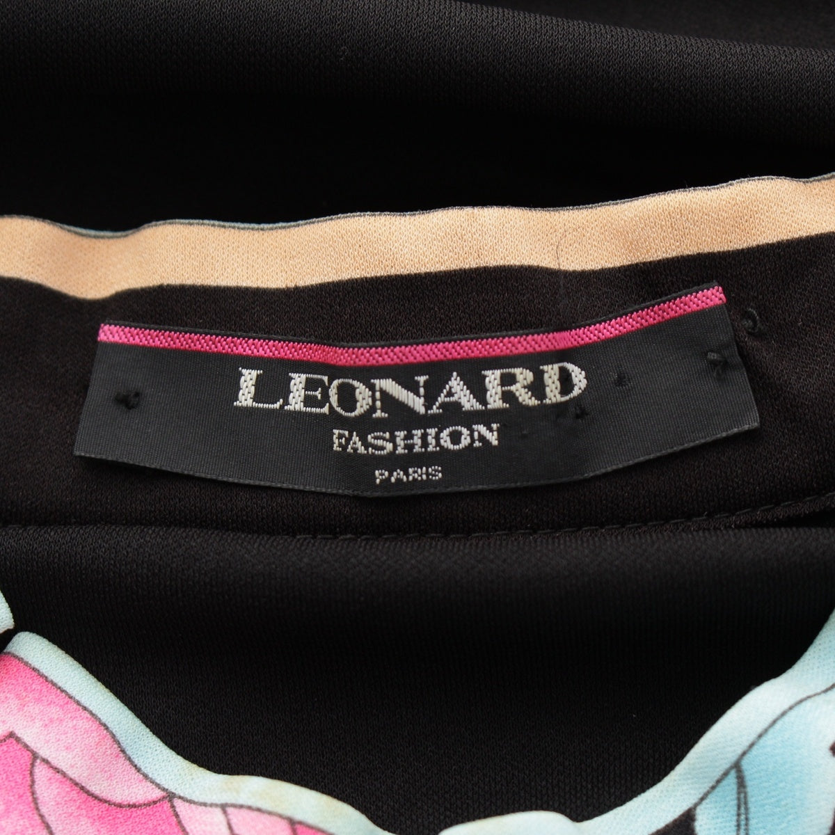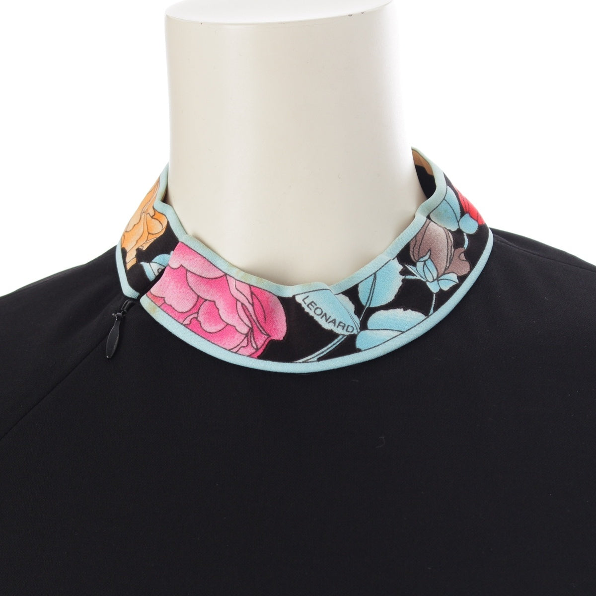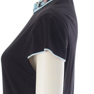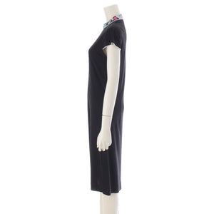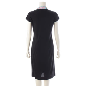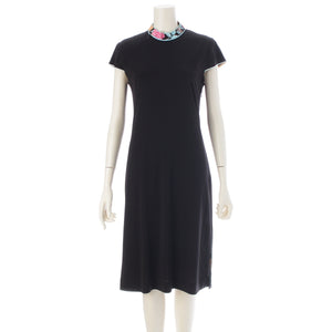 LEONARD Cancan material Trim Pattern Switching French Sleeve Crew Neck one piece dress 0130552 black M