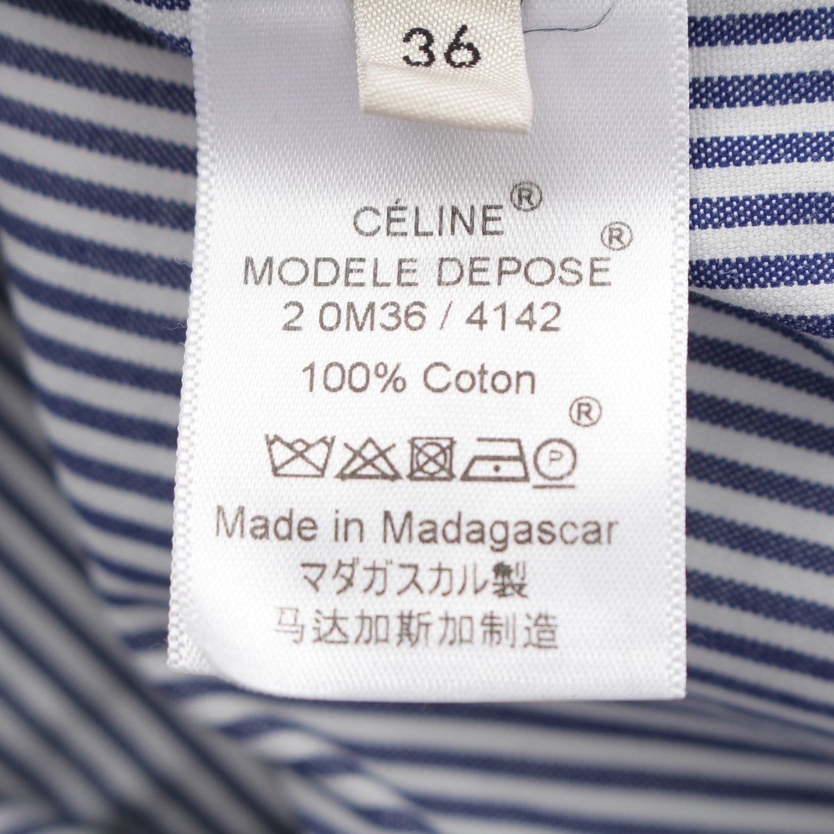 CELINE cotton Striped stand-collar tuxedo Long sleeve shirt 2 OM36/4142 blue 36