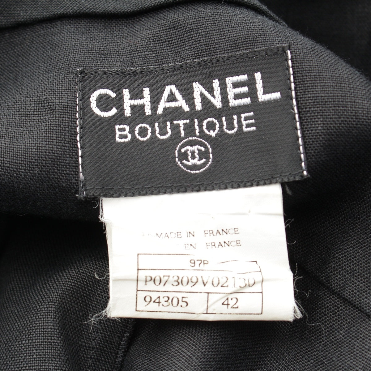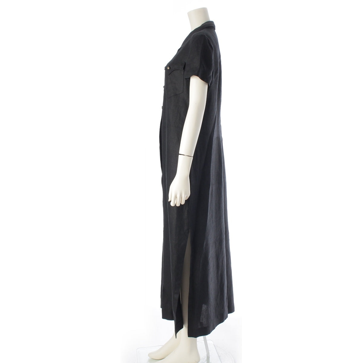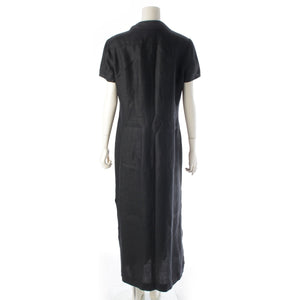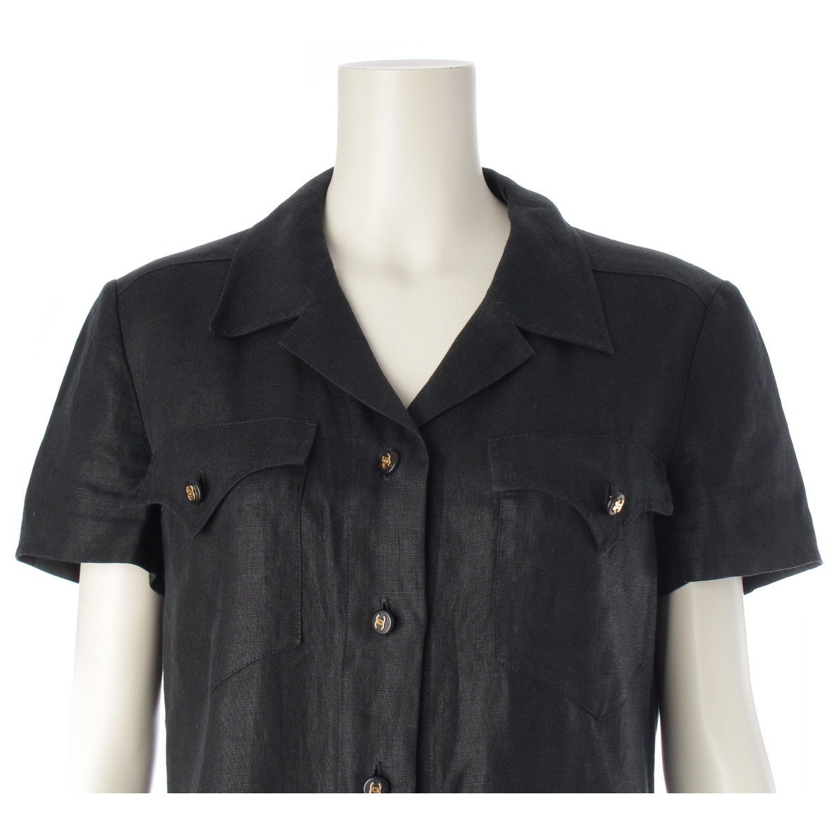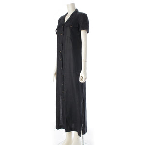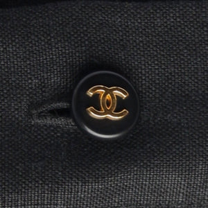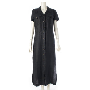 CHANEL linen COCO Button Long Shirt one piece Short sleeve P07309 black 42