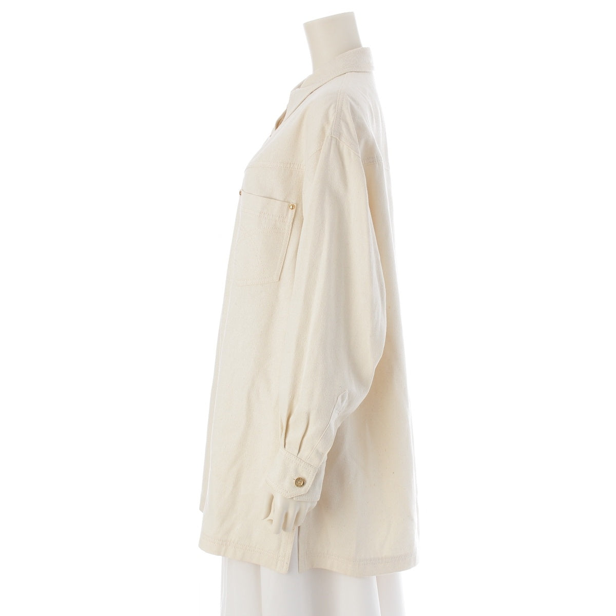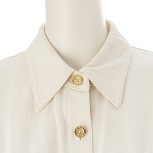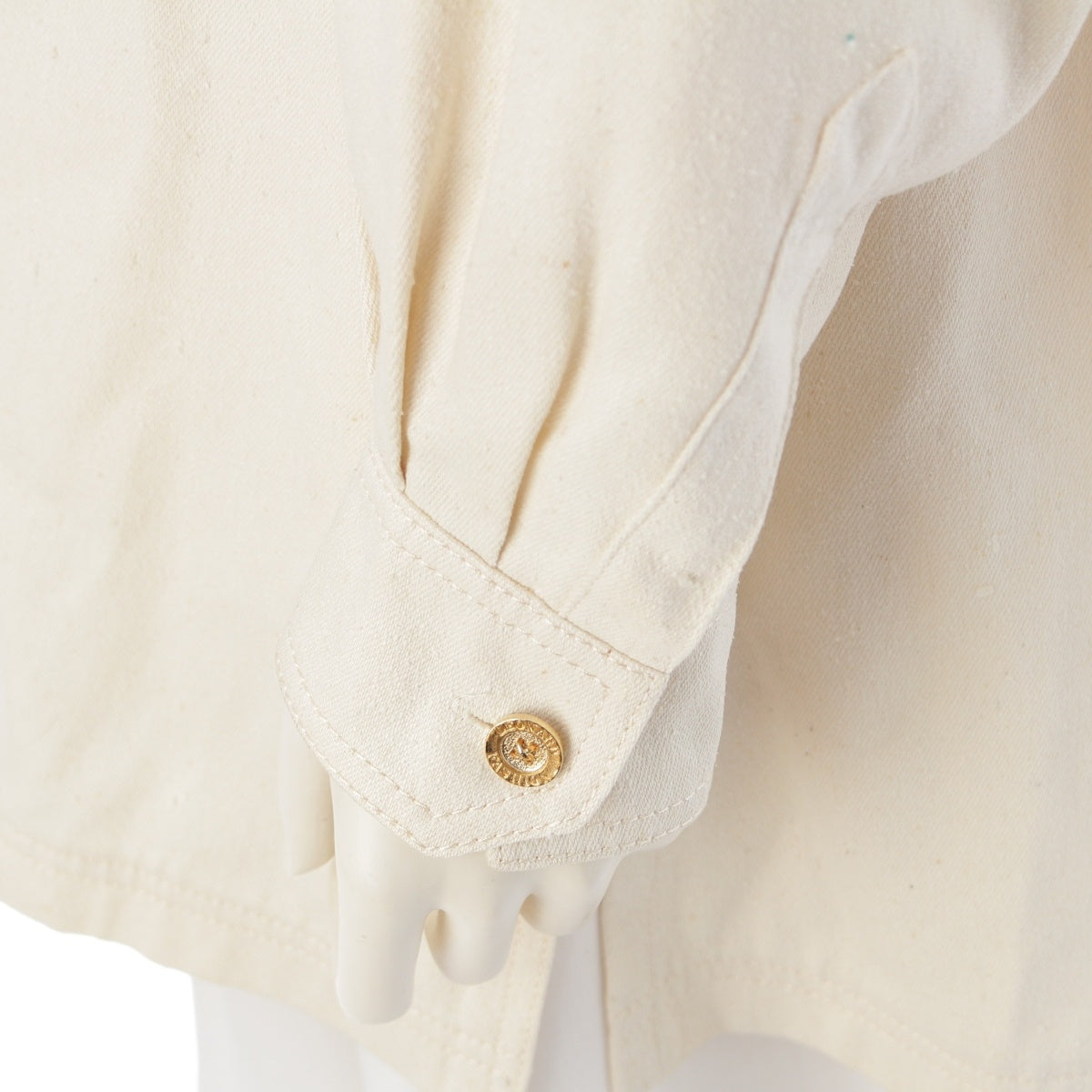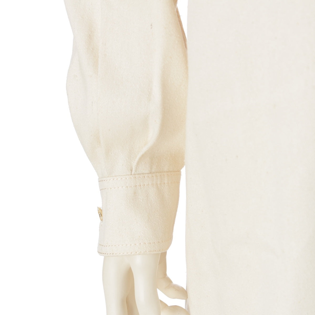 LEONARD silk Gold buttons, stitching, oversized fit Long sleeve shirt Ivory beige 9R